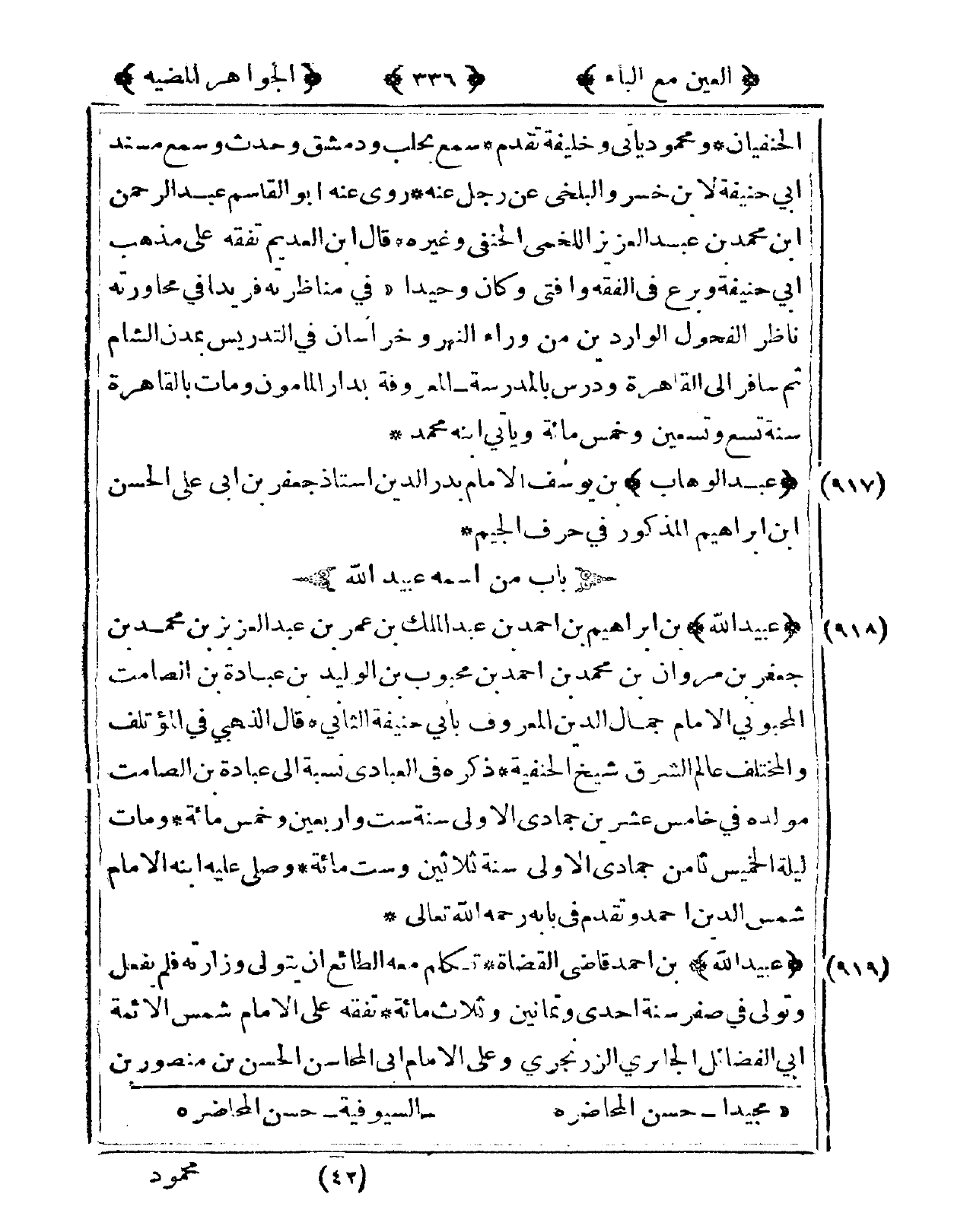 917 - عبد الْوَهَّاب بن يُوسُف الإِمَام بدر الدّين أستاذ جَعْفَر بن أبي عَليّ الْحسن ابْن إِبْرَاهِيم الْمَذْكُور فى حرف الْجِيم