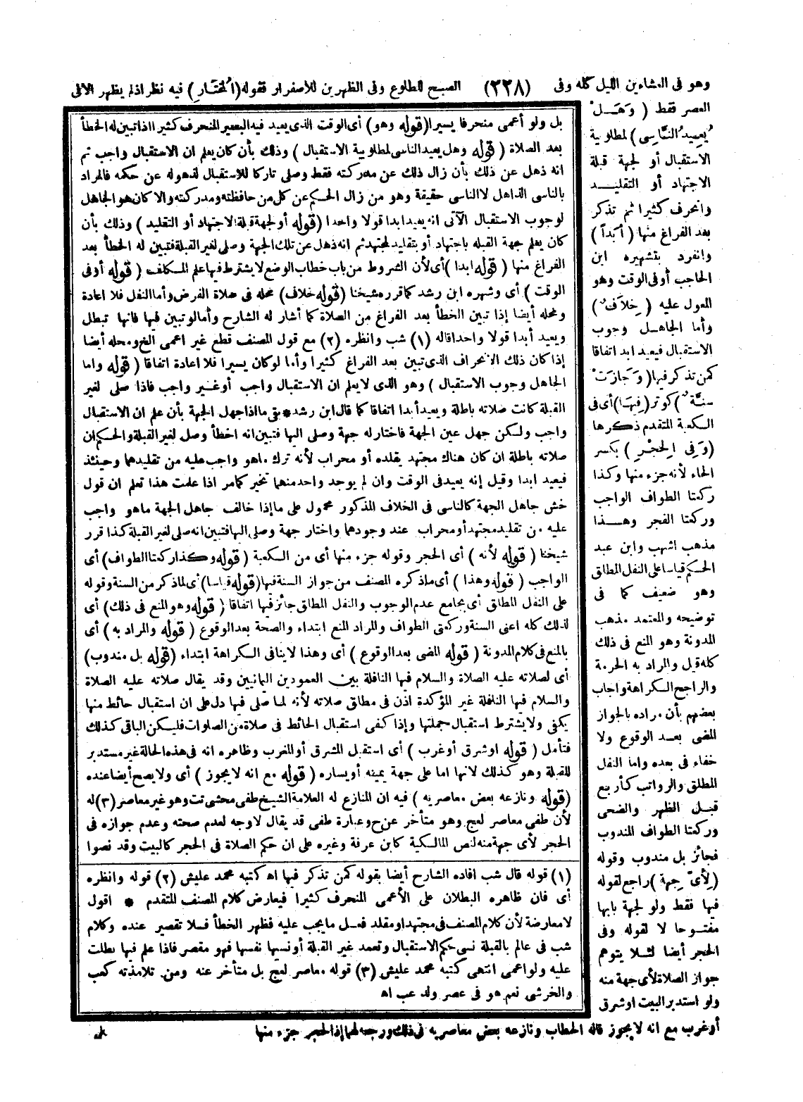 وَهُوَ فِي الْعِشَاءَيْنِ اللَّيْلُ كُلُّهُ وَفِي الصُّبْحِ لِلطُّلُوعِ وَفِي الظُّهْرَيْنِ لِلِاصْفِرَارِ فَقَوْلُهُ: (الْمُخْتَارُ) فِيهِ نَظَرٌ إذْ لَمْ يَظْهَرْ إلَّا فِي الْعَصْرِ فَقَطْ (وَهَلْ يُعِيدُ النَّاسِي) لِمَطْلُوبِيَّةِ الِاسْتِقْبَالِ أَوْ لِجِهَةِ قَبْلِهِ الِاجْتِهَادِ أَوْ التَّقْلِيدِ وَانْحَرَفَ كَثِيرًا ثُمَّ تَذَكَّرَ بَعْدَ الْفَرَاغِ مِنْهَا (أَبَدًا) وَانْفَرَدَ بِتَشْهِيرِهِ ابْنَ الْحَاجِبِ أَوْ فِي الْوَقْتِ وَهُوَ الْمُعَوَّلُ عَلَيْهِ (خِلَافٌ) .