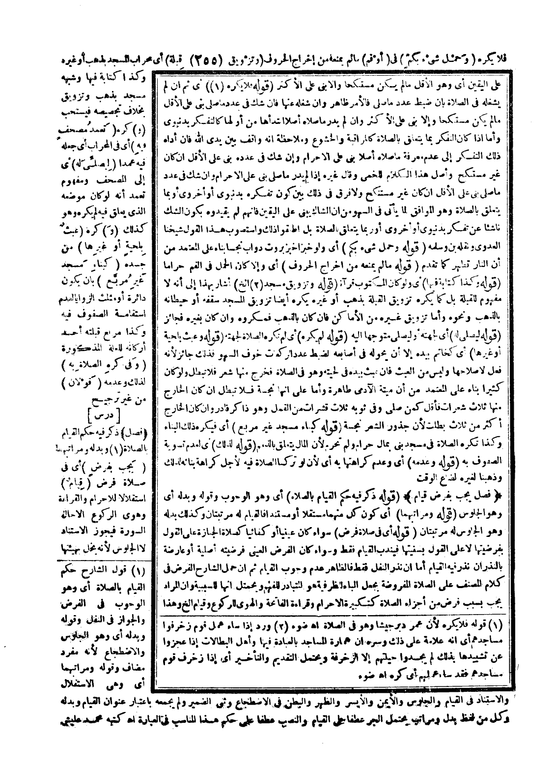 [دَرْسٌ] (فَصْلٌ) ذُكِرَ فِيهِ حُكْمُ الْقِيَامِ بِالصَّلَاةِ وَبَدَلُهُ وَمَرَاتِبُهُمَا (يَجِبُ بِفَرْضٍ) أَيْ فِي صَلَاة فَرْضٍ (قِيَامٌ) اسْتِقْلَالًا لِلْإِحْرَامِ وَالْقِرَاءَةِ وَهُوِيِّ الرُّكُوعِ إلَّا حَالَ السُّورَةِ فَيَجُوزُ الِاسْتِنَادُ لَا الْجُلُوسُ لِأَنَّهُ يُخِلُّ بِهَيْئَتِهَا