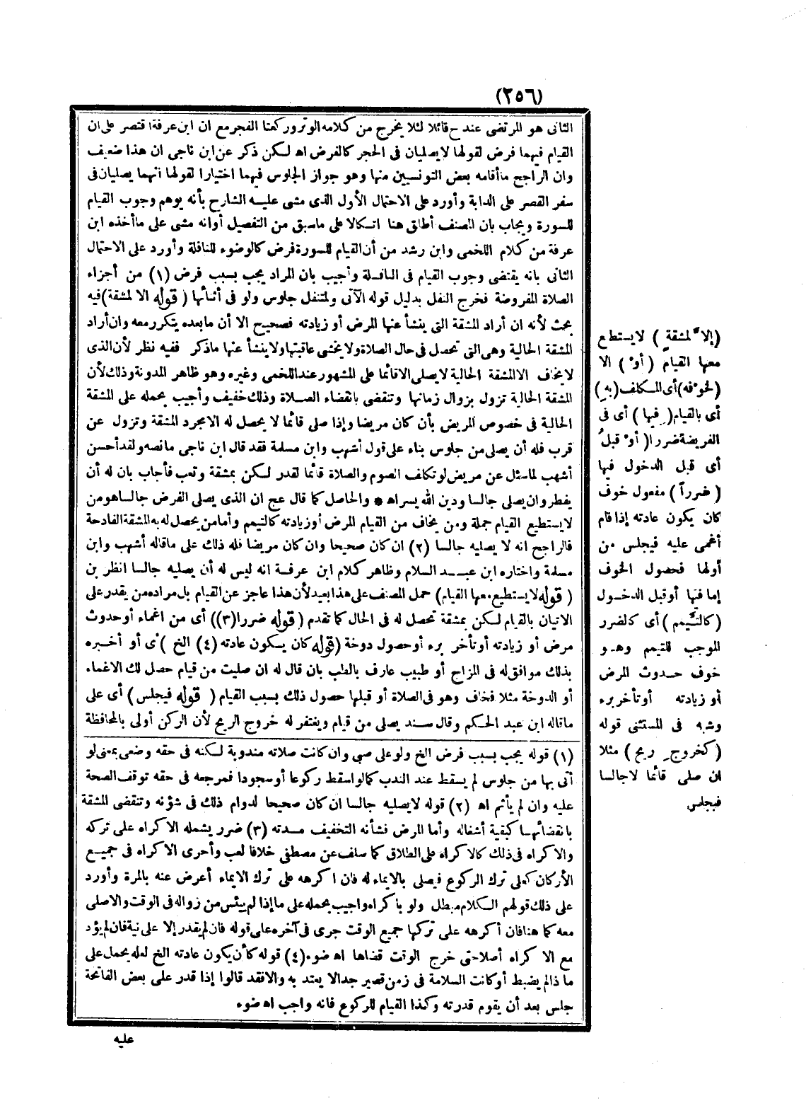 (إلَّا لِمَشَقَّةٍ) لَا يَسْتَطِيعُ مَعَهَا الْقِيَام (أَوْ) إلَّا (لِخَوْفِهِ) أَيْ الْمُكَلَّفِ (بِهِ) أَيْ بِالْقِيَامِ (فِيهَا) أَيْ فِي الْفَرِيضَةِ ضَرَرٌ (أَوْ قَبْلَ) أَيْ قَبْلَ الدُّخُولِ فِيهَا (ضَرَرًا) مَفْعُولُ خَوْفٍ كَأَنْ يَكُونَ عَادَتُهُ إذَا قَامَ أُغْمِيَ عَلَيْهِ فَيَجْلِسُ مِنْ أَوَّلِهَا فَحُصُولُ الْخَوْفِ إمَّا فِيهَا أَوْ قَبْلَ الدُّخُولِ (كَالتَّيَمُّمِ) أَيْ كَالضَّرَرِ الْمُوجِبِ لِلتَّيَمُّمِ وَهُوَ خَوْفُ حُدُوثِ الْمَرَض أَوْ زِيَادَتِهِ أَوْ تَأَخُّرِ بُرْءٍ وَشَبَّهَ فِي الْمُسْتَثْنَى قَوْلَهُ (كَخُرُوجِ رِيحٍ) مَثَلًا إنْ صَلَّى قَائِمًا لَا جَالِسًا فَيَجْلِسُ
