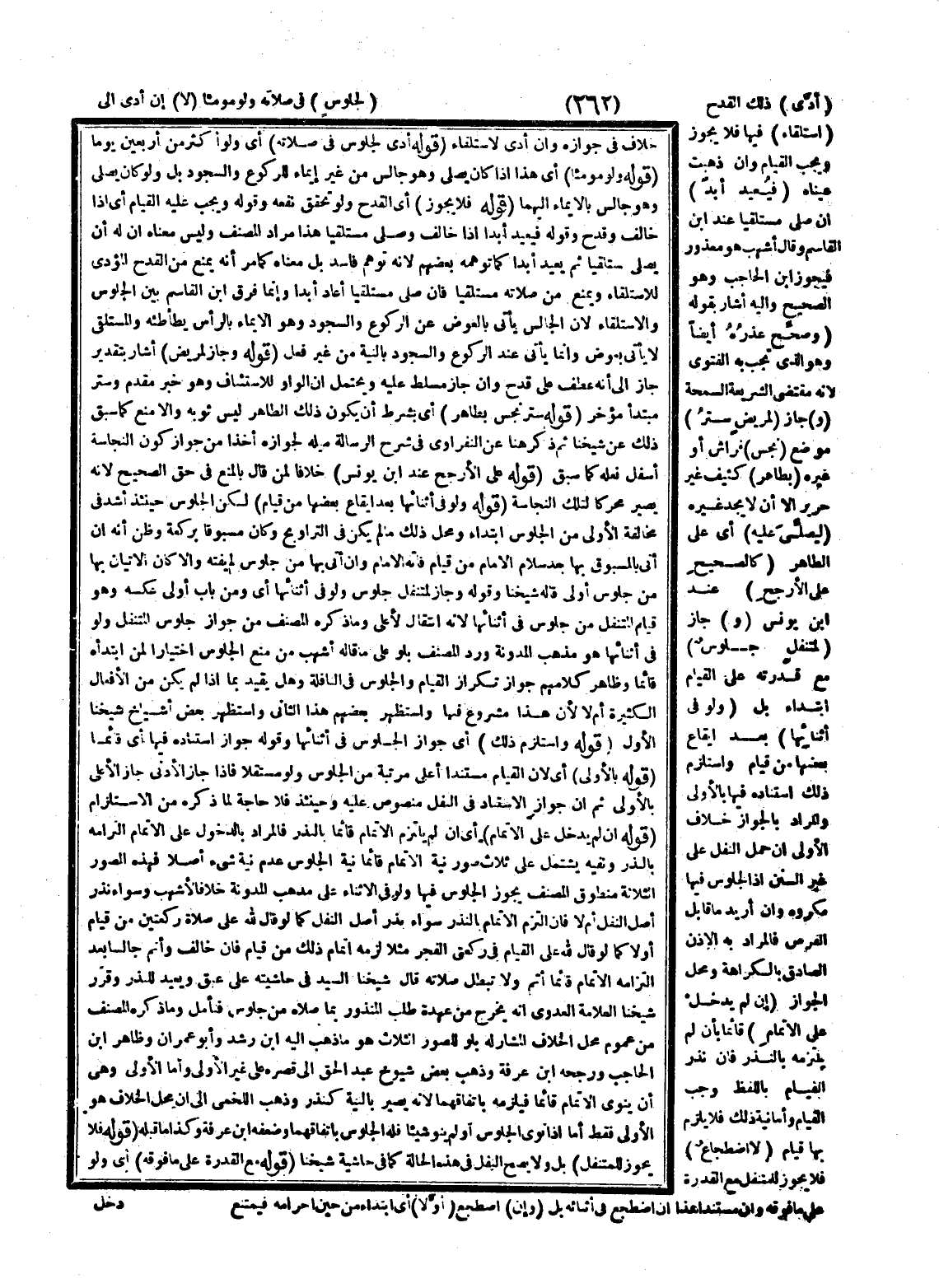 (قَوْلُهُ وَاسْتَلْزَمَ ذَلِكَ) أَيْ جَوَازُ الْجُلُوسِ فِي أَثْنَائِهَا وَقَوْلُهُ جَوَازُ اسْتِنَادِهِ فِيهَا أَيْ قَائِمًا.