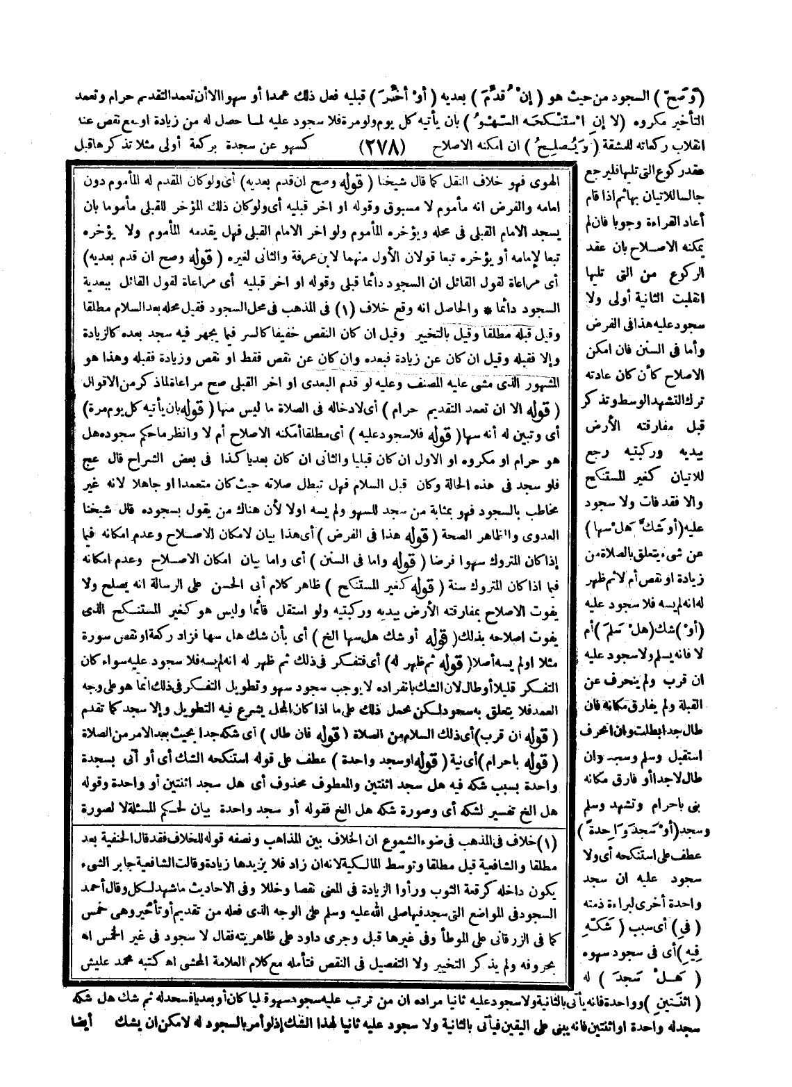 (وَصَحَّ) السُّجُودُ مِنْ حَيْثُ هُوَ (إنْ) (قَدَّمَ) بَعْدِيَّةً (أَوْ أَخَّرَ) قَبْلِيَّةً فَعَلَ ذَلِكَ عَمْدًا أَوْ سَهْوًا إلَّا أَنَّ تَعَمُّدَ التَّقْدِيمِ حَرَامٌ وَتَعَمُّدَ التَّأْخِيرِ مَكْرُوهٌ (لَا إنْ اسْتَنْكَحَهُ السَّهْوُ) بِأَنْ يَأْتِيَهُ كُلَّ يَوْمٍ وَلَوْ مَرَّةً فَلَا سُجُودَ عَلَيْهِ لِمَا حَصَلَ لَهُ مِنْ زِيَادَةٍ أَوْ مَعَ نَقْصٍ عِنْدَ انْقِلَابِ رَكَعَاتِهِ لِلْمَشَقَّةِ (وَيُصْلِحُ) إنْ أَمْكَنَهُ الْإِصْلَاحُ كَسَهْوٍ عَنْ سَجْدَةٍ بِرَكْعَةٍ أُولَى مَثَلًا تَذَكَّرَهَا قَبْلَ عَقْدِ رُكُوعِ الَّتِي تَلِيهَا فَلْيَرْجِعْ جَالِسًا لِلْإِتْيَانِ بِهَا ثُمَّ إذَا قَامَ أَعَادَ الْقِرَاءَةَ وُجُوبًا فَإِنْ لَمْ يُمْكِنْهُ الْإِصْلَاحُ بِأَنْ عَقَدَ الرُّكُوعَ مِنْ الَّتِي تَلِيهَا انْقَلَبَتْ الثَّانِيَةُ أُولَى وَلَا سُجُودَ عَلَيْهِ هَذَا فِي الْفَرْضِ وَأَمَّا فِي السُّنَنِ فَإِنْ أَمْكَنَ الْإِصْلَاحُ كَأَنْ كَانَ عَادَتُهُ تَرْكَ التَّشَهُّدِ الْوَسَطِ وَتَذَكَّرَ قَبْلَ مُفَارِقَتِهِ الْأَرْضَ بِيَدَيْهِ وَرُكْبَتَيْهِ رَجَعَ لِلْإِتْيَانِ كَغَيْرِ الْمُسْتَنْكِحِ وَإِلَّا فَقَدْ فَاتَ وَلَا سُجُودَ عَلَيْهِ