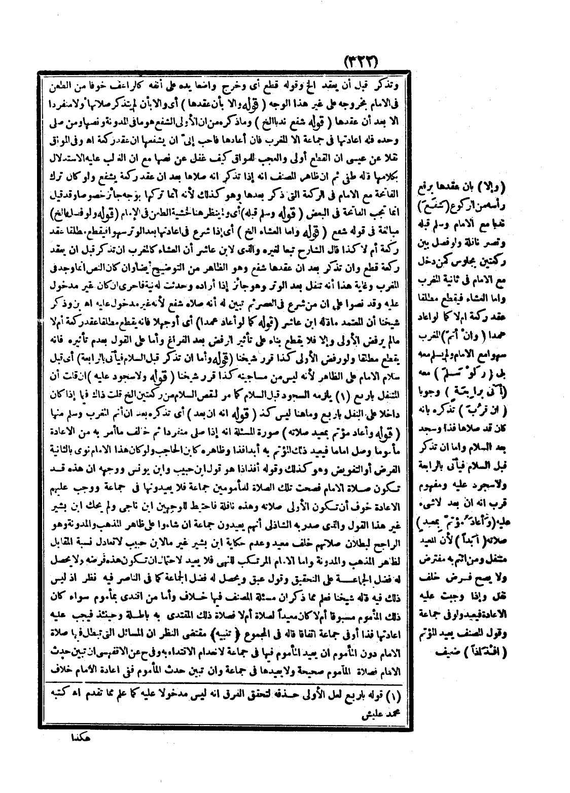 وَإِذَا وَجَبَتْ عَلَيْهِ الْإِعَادَةُ فَيُعِيدُ وَلَوْ فِي جَمَاعَةٍ وَقَوْلُ الْمُصَنِّفِ يُعِيدُ الْمُؤْتَمُّ (أَفْذَاذًا) ضَعِيفٌ