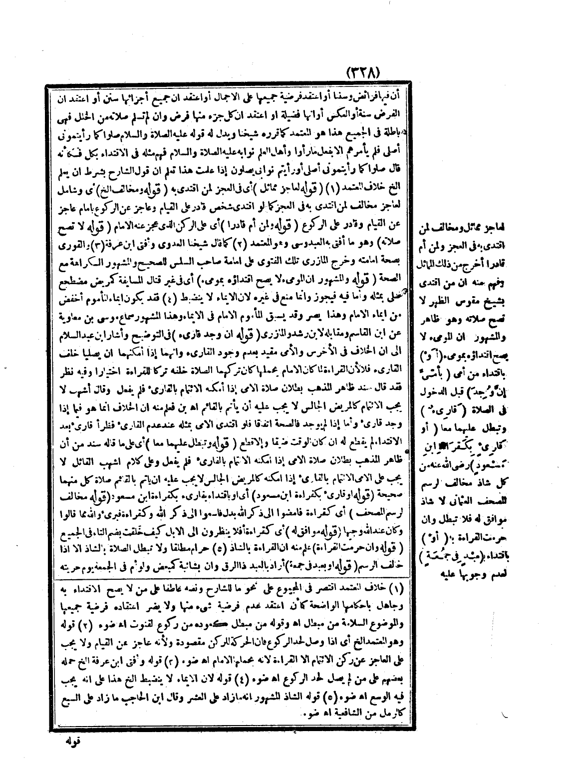 لِعَاجِزٍ مُمَاثِلٍ وَمُخَالِفٍ لِمَنْ اقْتَدَى بِهِ فِي الْعَجْزِ وَلِمَنْ أَمَّ قَادِرًا أَخْرَجَ مِنْ ذَلِكَ الْمُمَاثِلَ وَفَهِمَ مِنْهُ أَنَّ مَنْ اقْتَدَى بِشَيْخٍ مُقَوَّسِ الظَّهْرِ لَا تَصِحُّ صَلَاتُهُ.