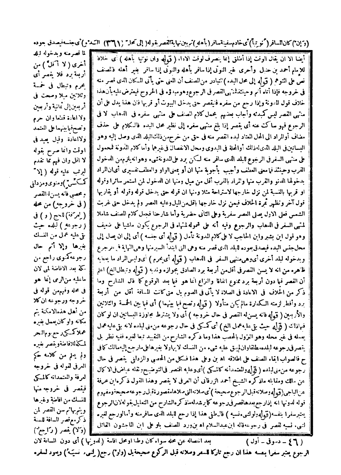 (قَوْلُهُ وَلَوْ لِشَيْءٍ نَسِيَهُ) قَالَ طفى هَذَا إذَا رَجَعَ لِلْبَلَدِ الَّذِي سَافَرَ مِنْهُ وَأَمَّا لَوْ رَجَعَ لِغَيْرِهِ لِشَيْءٍ نَسِيَهُ لَقَصَرَ فِي رُجُوعِهِ قَالَهُ ابْنُ عَبْدِ السَّلَامِ اهـ بْن وَرَدَّ الْمُصَنِّفُ بِلَوْ عَلَى ابْنِ الْمَاجِشُونِ الْقَائِلِ