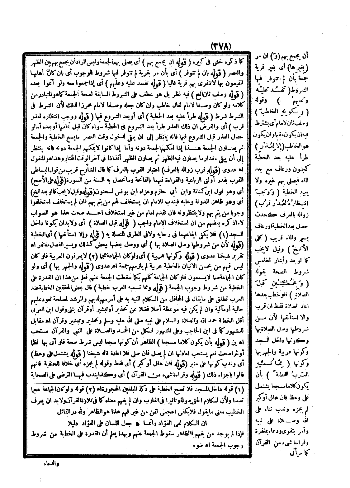 ـــــــــــــــــــــــــــــQكَمَا ذَكَرَهُ خش فِي كَبِيرِهِ (قَوْلُهُ أَنْ يُجَمِّعَ بِهِمْ) أَيْ يُصَلِّيَ بِهِمْ الْجُمُعَةَ وَلَيْسَ الْمُرَادُ أَنْ يَجْمَعَ بِهِمْ بَيْنَ الظُّهْرِ وَالْعَصْرِ (قَوْلُهُ بِأَنْ لَمْ تَتَوَفَّرْ) أَيْ بِأَنْ مَرَّ بِقَرْيَةٍ لَمْ تَتَوَفَّرْ فِيهَا شُرُوطُ الْوُجُوبِ أَيْ بِأَنْ كَانَ أَهْلُهَا الْمُقِيمُونَ بِهَا لَا تَتَقَرَّى بِهِمْ قَرْيَةٌ غَالِبًا (قَوْلُهُ تَفْسُدُ عَلَيْهِ وَعَلَيْهِمْ) أَيْ إذَا جَمَّعُوا مَعَهُ وَلَوْ أَتَمُّوا بَعْدَهُ (قَوْلُهُ وَصْفٌ ثَانٍ إلَخْ) فِيهِ نَظَرٌ بَلْ هُوَ عَطْفٌ عَلَى الشُّرُوطِ السَّابِقَةِ لِصِحَّةِ الْجُمُعَةِ كَمَا هُوَ الْمُتَبَادِرُ مِنْ كَلَامِهِ وَلَوْ كَانَ وَصْفًا لِإِمَامٍ لَقَالَ خَاطِبٍ وَإِنْ كَانَ جَعْلُهُ وَصْفًا لِإِمَامٍ مُحْرَزًا لِذَلِكَ لِأَنَّ الشَّرْطَ فِي الشَّرْطِ شَرْطٌ (قَوْلُهُ طَرَأَ عَلَيْهِ بَعْدَ الْخُطْبَةِ) أَيْ أَوْ بَعْدَ الشُّرُوعِ فِيهَا (قَوْلُهُ وَوَجَبَ انْتِظَارُهُ لِعُذْرٍ قَرُبَ) أَيْ وَالْفَرْضُ أَنَّ ذَلِكَ الْعُذْرَ طَرَأَ بَعْدَ الشُّرُوعِ فِي الْخُطْبَةِ سَوَاءٌ كَانَ قَبْلَ تَمَامِهَا أَوْ بَعْدَهُ أَمَّا لَوْ حَصَلَ الْعُذْرُ قَبْلَ الشُّرُوعِ فِيهَا فَإِنَّهُ يُنْتَظَرُ إلَى أَنْ يَبْقَى لِدُخُولِ وَقْتِ الْعَصْرِ مَا يَسَعُ الْخُطْبَةَ وَالْجُمُعَةَ ثُمَّ يُصَلُّونَ الْجُمُعَةَ، هَذَا إذَا أَمْكَنَهُمْ الْجُمُعَةُ دُونَهُ وَأَمَّا إذَا كَانُوا لَا يُمْكِنُهُمْ الْجُمُعَةُ دُونَهُ فَإِنَّهُ يُنْتَظَرُ إلَى أَنْ يَبْقَى مِقْدَارُ مَا يُصَلُّونَ فِيهِ الظُّهْرَ ثُمَّ يُصَلُّونَ الظُّهْرَ أَفْذَاذًا فِي آخِرِ الْوَقْتِ الْمُخْتَارِ وَهَذَا هُوَ الْمَنْقُولُ اهـ عَدَوِيٌّ (قَوْلُهُ قَرُبَ زَوَالُهُ بِالْعُرْفِ) اعْتِبَارُ الْقُرْبِ بِالْعُرْفِ كَمَا قَالَ الشَّارِحُ قَرِيبٌ مِنْ قَوْلِ الْبِسَاطِيِّ الْقُرْبُ بِقَدْرِ أُولَتَيْ الرُّبَاعِيَّةِ وَالْقِرَاءَةِ فِيهِمَا بِالْفَاتِحَةِ وَمَا تَحْصُلُ بِهِ السُّنَّةُ مِنْ السُّورَةِ (قَوْلُهُ عَلَى الْأَصَحِّ) أَيْ وَهُوَ قَوْلُ ابْنِ كِنَانَةَ وَابْنِ أَبِي حَازِمٍ وَعَزَاهُ ابْنُ يُونُسَ لِسَحْنُونٍ (قَوْلُهُ وَقِيلَ لَا يَجِبُ كَمَا لَوْ بَعُدَ إلَخْ) أَيْ وَهُوَ ظَاهِرُ الْمُدَوَّنَةِ وَعَلَيْهِ فَيُنْدَبُ لِلْإِمَامِ أَنْ يَسْتَخْلِفَ لَهُمْ مَنْ يُتِمُّ بِهِمْ فَإِنْ لَمْ يَسْتَخْلِفْ اسْتَخْلَفُوا وُجُوبًا مَنْ يُتِمُّ بِهِمْ وَلَا يَنْتَظِرُونَهُ فَإِنْ تَقَدَّمَ إمَامٌ مِنْ غَيْرِ اسْتِخْلَافِ أَحَدٍ صَحَّتْ، هَذَا هُوَ الصَّوَابُ لَا مَا ذَكَرَهُ بَعْضُهُمْ مِنْ أَنَّ اسْتِخْلَافَ الْإِمَامِ وَاجِبٌ