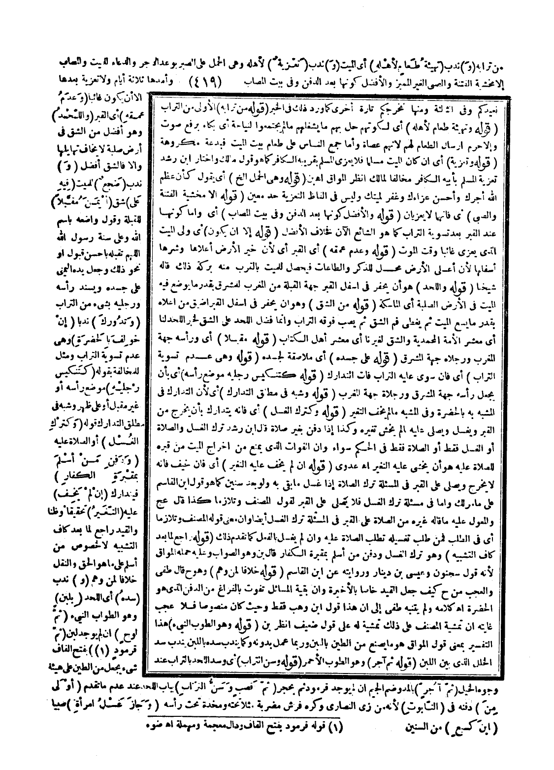 (قَوْلُهُ وَهُوَ الطُّوبُ النِّيءُ) هَذَا التَّفْسِيرُ بِمَعْنَى قَوْلِ الْمَوَّاقِ هُوَ مَا يُصْنَعُ مِنْ الطِّينِ بِالتِّبْنِ، وَرُبَّمَا عُمِلَ بِدُونِهِ وَكَمَا يُنْدَبُ سَدُّهُ بِاللَّبِنِ يُنْدَبُ سَدُّ الْخَلَلِ الَّذِي بَيْنَ اللَّبِنِ (قَوْلُهُ ثُمَّ آجُرٍّ) وَهُوَ الطُّوبُ الْأَحْمَرُ (قَوْلُهُ وَسُنَّ التُّرَابُ) أَيْ وَسَدُّ اللَّحْدِ بِالتُّرَابِ عِنْدَ
