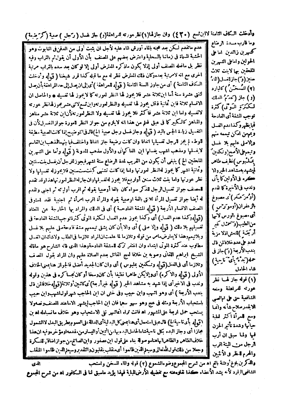 وَأَدْخَلَتْ الْكَافُ الثَّامِنَةَ لَا ابْنَ تِسْعٍ وَإِنْ جَازَ لَهَا نَظَرُ عَوْرَتِهِ لِلْمُرَاهِقَةِ (وَ) جَازَ غُسْلُ (رَجُلٍ) صَبِيَّةً (كَرَضِيعَةٍ) وَمَا قَارَبَ مُدَّةَ الرَّضَاعِ كَشَهْرَيْنِ زَائِدَيْنِ إمَّا عَلَى الْحَوْلَيْنِ وَإِمَّا عَلَى الشَّهْرَيْنِ الْمُلْحَقَيْنِ بِهِمَا لَا بِنْتَ ثَلَاثِ سِنِينَ