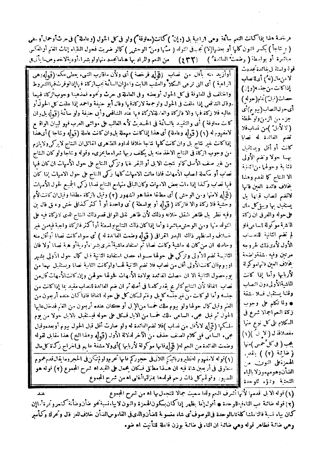 (قَوْلُهُ بَلْ وَإِنْ كَانَتْ مَعْلُوفَةً) أَيْ وَالتَّقْيِيدُ بِالسَّائِمَةِ فِي الْحَدِيثِ لِأَنَّهُ الْغَالِبُ عَلَى مَوَاشِي الْعَرَبِ فَهُوَ لِبَيَانِ الْوَاقِعِ لَا مَفْهُومَ لَهُ (قَوْلُهُ وَعَامِلَةً) أَيْ هَذَا إذَا كَانَتْ مُهْمَلَةً بَلْ وَإِنْ كَانَتْ عَامِلَةً (قَوْلُهُ وَنِتَاجًا) أَيْ هَذَا إذَا كَانَتْ غَيْرَ نِتَاجٍ بَلْ وَإِنْ كَانَتْ كُلُّهَا نِتَاجًا خِلَافًا لِدَاوُدَ الظَّاهِرِيِّ الْقَائِلِ إنَّ النِّتَاجَ لَا يُزَكَّى وَلَا يَلْزَمُ مِنْ وُجُوبِ الزَّكَاةِ فِي النِّتَاجِ الْأَخْذُ مِنْهُ بَلْ يُكَلَّفُ رَبُّهَا شِرَاءَ مَا يُجْزِئُ، وَقَوْلُهُ وَنِتَاجًا وَلَوْ كَانَ النِّتَاجُ مِنْ غَيْرِ صِنْفِ الْأَصْلِ كَمَا لَوْ نَتَجَتْ الْإِبِلُ أَوْ الْبَقَرُ غَنَمًا وَتُزَكَّى النِّتَاجُ عَلَى حَوْلِ الْأُمَّهَاتِ إنْ كَانَ فِيهَا نِصَابٌ أَوْ مُكَمِّلَةٌ لِنِصَابِ الْأُمَّهَاتِ فَإِذَا مَاتَتْ الْأُمَّهَاتُ كُلُّهَا زَكَّى النِّتَاجَ عَلَى حَوْلِ الْأُمَّهَاتِ إذَا كَانَ فِيهَا نِصَابٌ وَكَذَا إذَا مَاتَ بَعْضُ الْأُمَّهَاتِ وَكَانَ الْبَاقِي مِنْهَا مَعَ النِّتَاجِ نِصَابًا زَكَّى الْجَمِيعَ لِحَوْلِ الْأُمَّهَاتِ.
