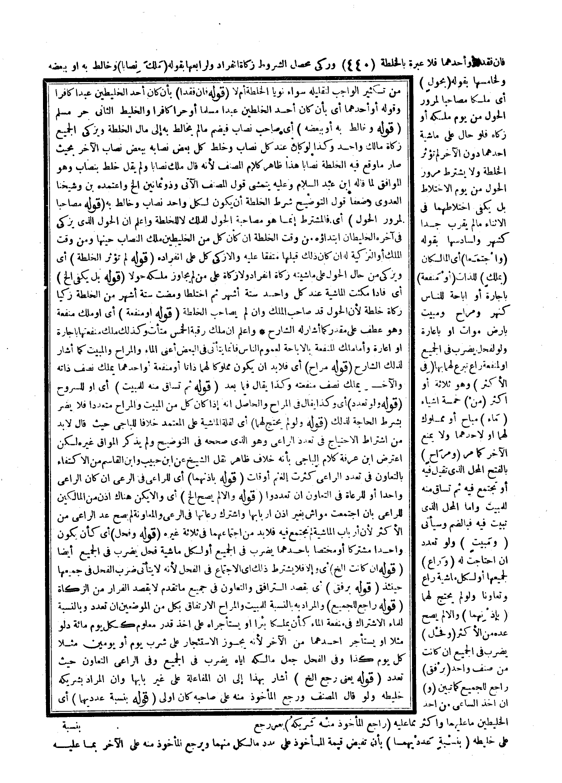 ـــــــــــــــــــــــــــــQمِنْ تَكْثِيرِ الْوَاجِبِ لِتَقْلِيلِهِ سَوَاءٌ نَوَيَا الْخُلْطَةَ أَمْ لَا (قَوْلُهُ فَإِنْ فُقِدَا) بِأَنْ كَانَ أَحَدُ الْخَلِيطَيْنِ عَبْدًا كَافِرًا وَقَوْلُهُ أَوْ أَحَدُهُمَا أَيْ بِأَنْ كَانَ أَحَدُ الْخِلْطَيْنِ عَبْدًا مُسْلِمًا أَوْ حُرًّا كَافِرًا وَالْخَلِيطُ الثَّانِي حُرٌّ مُسْلِمٌ.