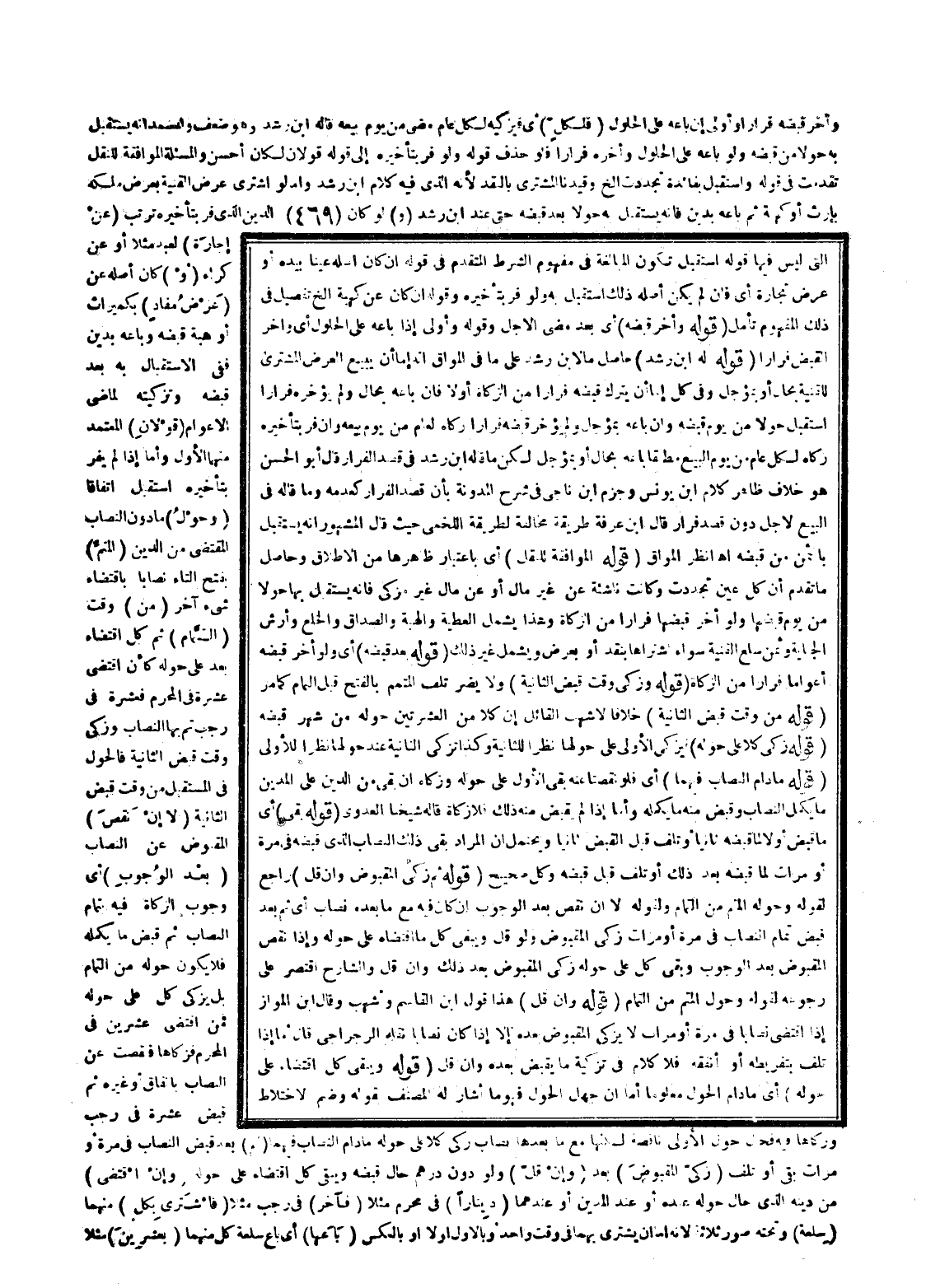 ـــــــــــــــــــــــــــــQالَّتِي لَيْسَ فِيهَا قَوْلُهُ اسْتَقْبَلَ تَكُونُ الْمُبَالَغَةُ فِي مَفْهُومِ الشَّرْطِ الْمُتَقَدِّمِ فِي قَوْلِهِ إنْ كَانَ أَصْلُهُ عَيْنًا بِيَدِهِ أَوْ عَرْضَ تِجَارَةٍ أَيْ فَإِنْ لَمْ يَكُنْ أَصْلُهُ ذَلِكَ اسْتَقْبَلَ بِهِ وَلَوْ فَرَّ بِتَأْخِيرِهِ وَقَوْلُهُ إنْ كَانَ عَنْ كَهِبَةٍ إلَخْ تَفْصِيلٌ فِي ذَلِكَ الْمَفْهُومِ تَأَمَّلْ.