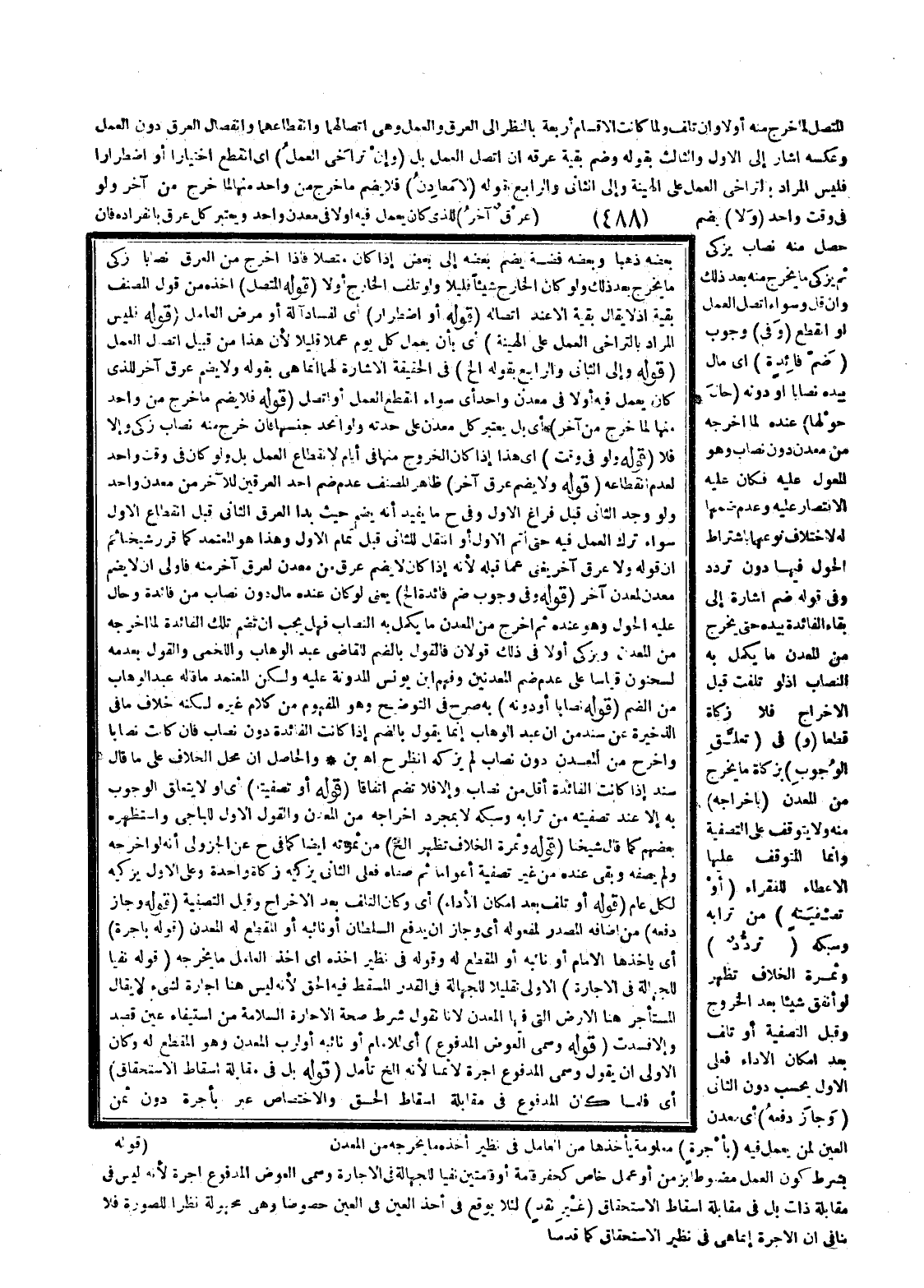 الْمُتَّصِلِ لِمَا خَرَجَ مِنْهُ أَوَّلًا وَإِنْ تَلِفَ وَلَمَّا كَانَتْ الْأَقْسَامُ أَرْبَعَةً بِالنَّظَرِ إلَى الْعِرْقِ وَالْعَمَلِ وَهِيَ اتِّصَالُهُمَا وَانْقِطَاعُهُمَا وَانْفِصَالُ الْعِرْقِ دُونَ الْعَمَلِ وَعَكْسُهُ أَشَارَ إلَى الْأَوَّلِ وَالثَّالِثِ بِقَوْلِهِ وَضُمَّ بَقِيَّةُ عِرْقِهِ إنْ اتَّصَلَ الْعَمَلُ بَلْ (وَإِنْ تَرَاخَى الْعَمَلُ) أَيْ انْقَطَعَ اخْتِيَارًا أَوْ اضْطِرَارًا فَلَيْسَ الْمُرَادُ بِالتَّرَاخِي الْعَمَلَ عَلَى الْهِينَةِ وَإِلَى الثَّانِي وَالرَّابِعِ بِقَوْلِهِ (لَا مَعَادِنُ) فَلَا يُضَمُّ مَا خَرَجَ مِنْ وَاحِدٍ مِنْهَا لِمَا خَرَجَ مِنْ آخَرَ وَلَوْ فِي وَقْتٍ وَاحِدٍ (وَلَا) يُضَمُّ (عِرْقٌ آخَرُ) لِلَّذِي كَانَ يَعْمَلُ فِيهِ أَوَّلًا فِي مَعْدِنٍ وَاحِدٍ وَيُعْتَبَرُ كُلُّ عِرْقٍ بِانْفِرَادِهِ فَإِنْ حَصَلَ مِنْهُ نِصَابٌ يُزَكَّى ثُمَّ يُزَكَّى مَا يَخْرُجُ مِنْهُ بَعْدَ ذَلِكَ وَإِنْ قَلَّ وَسَوَاءٌ اتَّصَلَ الْعَمَلُ أَوْ انْقَطَعَ (وَفِي) وُجُوبِ (ضَمِّ فَائِدَةٍ) أَيْ مَالٌ بِيَدِهِ نِصَابًا أَوْ دُونَهُ (حَالَ حَوْلُهَا) عِنْدَهُ لِمَا أَخْرَجَهُ مِنْ مَعْدِنٍ دُونَ نِصَابٍ وَهُوَ الْمُعَوَّلُ عَلَيْهِ فَكَانَ عَلَيْهِ الِاقْتِصَارُ عَلَيْهِ وَعَدَمُ ضَمِّهَا لَهُ لِاخْتِلَافِ نَوْعِهِمَا بِاشْتِرَاطِ الْحَوْلِ فِيهَا دُونَ تَرَدُّدٍ وَفِي قَوْلِهِ ضَمُّ إشَارَةٍ إلَى بَقَاءِ الْفَائِدَةِ بِيَدِهِ حَتَّى يَخْرُجَ مِنْ الْمَعْدِنِ مَا يَكْمُلُ بِهِ النِّصَابُ إذْ لَوْ تَلِفَتْ قَبْلَ الْإِخْرَاجِ فَلَا زَكَاةَ قَطْعًا (وَ) فِي (تَعَلُّقِ الْوُجُوبِ) بِزَكَاةِ مَا يَخْرُجُ مِنْ الْمَعْدِنِ (بِإِخْرَاجِهِ) مِنْهُ وَلَا يَتَوَقَّفُ عَلَى التَّصْفِيَةِ وَإِنَّمَا الْمُتَوَقِّفُ عَلَيْهَا الْإِعْطَاءُ لِلْفُقَرَاءِ (أَوْ تَصْفِيَتُهُ) مِنْ تُرَابِهِ وَسَبْكُهُ (تَرَدُّدٌ) وَثَمَرَةُ الْخِلَافِ تَظْهَرُ لَوْ أَنْفَقَ شَيْئًا بَعْدَ الْخُرُوجِ وَقَبْلَ التَّصْفِيَةِ أَوْ تَلِفَ بَعْدَ إمْكَانِ الْأَدَاءِ فَعَلَى الْأَوَّلِ يُحْسَبُ دُونَ الثَّانِي.