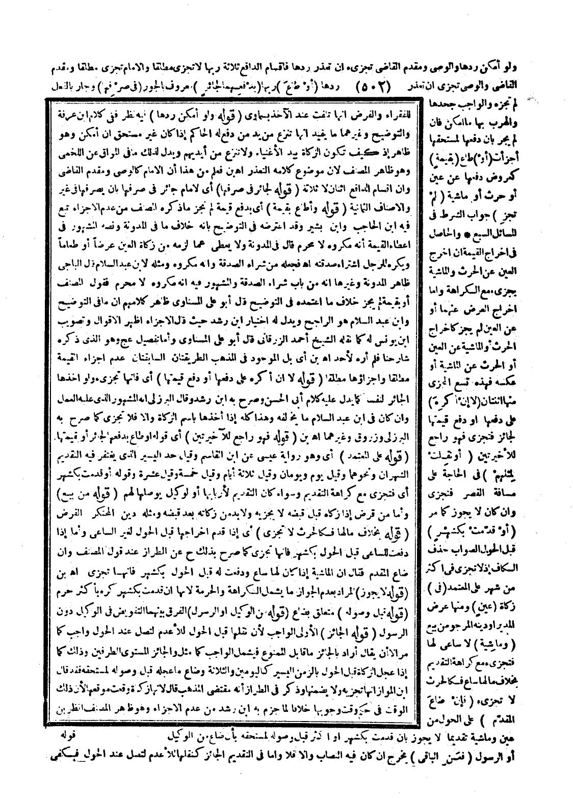 وَلَوْ أَمْكَنَ رَدَّهَا وَالْوَصِيَّ وَمُقَدَّمَ الْقَاضِي تُجْزِئُ إنْ تَعَذَّرَ رَدُّهَا فَأَقْسَامُ الدَّافِعِ ثَلَاثَةٌ رَبُّهَا لَا تُجْزِي مُطْلَقًا وَالْإِمَامُ تُجْزِي مُطْلَقًا وَمُقَدَّمُ الْقَاضِي وَالْوَصِيُّ تُجْزِي إنْ تَعَذَّرَ رَدُّهَا (أَوْ طَاعَ) رَبُّهَا (بِدَفْعِهِمَا لَجَائِرٍ) مَعْرُوفٍ بِالْجَوْرِ (فِي صَرْفِهَا) وَجَارٍ بِالْفِعْلِ لَمْ تُجْزِهِ وَالْوَاجِبُ جَحْدُهَا وَالْهَرَبُ بِهَا مَا أَمْكَنَ فَإِنْ لَمْ يَجُرْ بِأَنْ دَفَعَهَا لِمُسْتَحِقِّهَا أَجْزَأَتْ (أَوْ) طَاعَ (بِقِيمَةٍ) كَعَرُوضٍ دَفَعَهَا عَنْ عَيْنٍ أَوْ حَرْثٍ أَوْ مَاشِيَةٍ (لَمْ تُجْزِ) جَوَابُ الشَّرْطِ فِي الْمَسَائِلِ السَّبْعِ وَالْحَاصِل فِي إخْرَاج الْقِيمَة أَنْ أَخْرُج الْعَيْن عَنْ الْحَرْث وَالْمَاشِيَة يُجَزِّئ مَعَ الْكَرَاهَة، وَأَمَّا إخْرَاج الْعَرْض عَنْهُمَا أَوْ عَنْ الْعَيْن لَمْ يَجُزْ كَإِخْرَاجِ الْحَرْث أَوْ الْمَاشِيَة عَنْ الْعَيْن أَوْ الْحَرْث عَنْ الْمَاشِيَة أَوْ عَكَسَهُ فَهَذِهِ تِسْعٌ الْمُجْزِي مِنْهَا اثْنَتَانِ