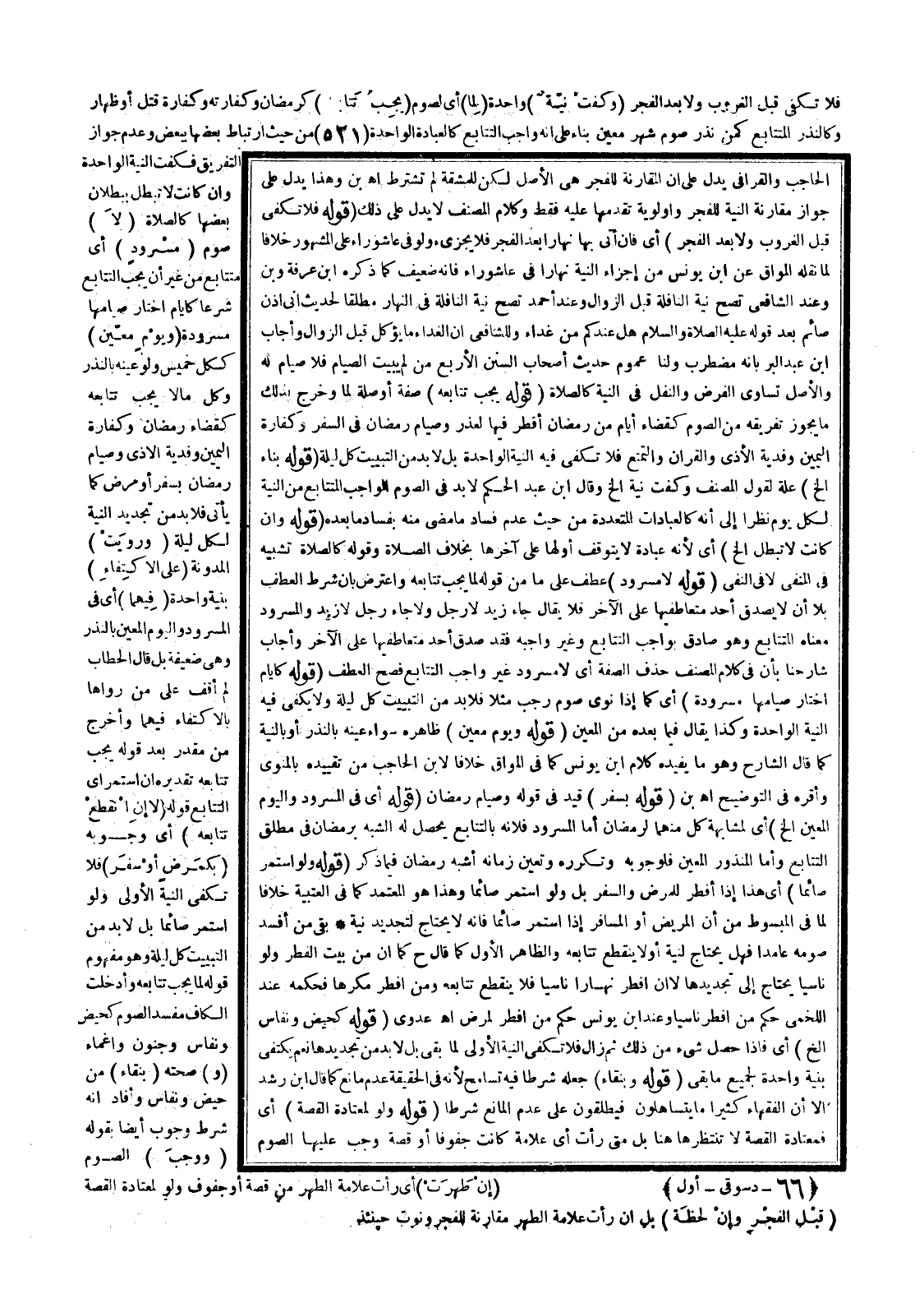 ـــــــــــــــــــــــــــــQوَالْقَرَافِيُّ يَدُلُّ عَلَى أَنَّ الْمُقَارَنَةَ لِلْفَجْرِ هِيَ الْأَصْلُ لَكِنْ لِلْمَشَقَّةِ لَمْ تُشْتَرَطْ اهـ بْن وَهَذَا يَدُلُّ عَلَى جَوَازِ مُقَارَنَةِ النِّيَّةِ لِلْفَجْرِ وَأَوْلَوِيَّةِ تَقَدُّمِهَا عَلَيْهِ فَقَطْ وَكَلَامُ الْمُصَنِّفِ لَا يَدُلُّ عَلَى ذَلِكَ (قَوْلُهُ فَلَا تَكْفِي قَبْلَ الْغُرُوبِ وَلَا بَعْدَ الْفَجْرِ) أَيْ فَإِنْ أَتَى بِهَا نَهَارًا بَعْدَ الْفَجْرِ فَلَا يُجْزِئُ وَلَوْ فِي عَاشُورَاءَ عَلَى الْمَشْهُورِ خِلَافًا لِمَا نَقَلَهُ الْمَوَّاقُ عَنْ ابْنِ يُونُسَ مِنْ إجْزَاءِ النِّيَّةِ نَهَارًا فِي عَاشُورَاءَ فَإِنَّهُ ضَعِيفٌ كَمَا ذَكَرَهُ ابْنُ عَرَفَةَ وبن وَعِنْدَ الشَّافِعِيِّ تَصِحُّ نِيَّةُ النَّافِلَةِ قَبْلَ الزَّوَالِ وَعِنْدَ أَحْمَدَ تَصِحُّ نِيَّةُ النَّافِلَةِ فِي النَّهَارِ مُطْلَقًا لِحَدِيثِ «إنِّي إذَنْ صَائِمٌ» بَعْدَ قَوْلِهِ - عَلَيْهِ الصَّلَاةُ وَالسَّلَامُ - «هَلْ عِنْدَكُمْ مِنْ غَدَاءٍ» وَلِلشَّافِعِيِّ أَنَّ الْغَدَاءَ مَا يُؤْكَلُ قَبْلَ الزَّوَالِ وَأَجَابَ ابْنُ عَبْدِ الْبَرِّ بِأَنَّهُ مُضْطَرِبٌ وَلَنَا عُمُومُ حَدِيثِ أَصْحَابِ السُّنَنِ الْأَرْبَعِ «مَنْ لَمْ يُبَيِّتْ الصِّيَامَ فَلَا صِيَامَ لَهُ» وَالْأَصْلُ تَسَاوِي الْفَرْضِ وَالنَّفَلِ فِي النِّيَّةِ كَالصَّلَاةِ (قَوْلُهُ يَجِبُ تَتَابُعُهُ) صِفَةٌ أَوْ صِلَةٌ لِمَا وَخَرَجَ بِذَلِكَ مَا يَجُوزُ تَفْرِيقُهُ مِنْ الصَّوْمِ كَقَضَاءِ أَيَّامٍ مِنْ رَمَضَانَ أَفْطَرَ فِيهَا لِعُذْرٍ وَصِيَامِ رَمَضَانَ فِي السَّفَرِ وَكَفَّارَةِ الْيَمِينِ وَفِدْيَةِ الْأَذَى وَالْقِرَانِ وَالتَّمَتُّعِ فَلَا تَكْفِي فِيهِ النِّيَّةُ الْوَاحِدَةُ بَلْ لَا بُدَّ مِنْ التَّبْيِيتِ كُلَّ لَيْلَةٍ (قَوْلُهُ بِنَاءً إلَخْ) عِلَّةٌ لِقَوْلِ الْمُصَنِّفِ وَكَفَتْ نِيَّةٌ إلَخْ وَقَالَ ابْنُ عَبْدِ الْحَكَمِ لَا بُدَّ فِي الصَّوْمِ الْوَاجِبِ الْمُتَتَابِعِ مِنْ النِّيَّةِ لِكُلِّ يَوْمٍ نَظَرًا إلَى أَنَّهُ كَالْعِبَادَاتِ الْمُتَعَدِّدَةِ مِنْ حَيْثُ عَدَمُ فَسَادِ مَا مَضَى مِنْهُ بِفَسَادِ مَا بَعْدَهُ (قَوْلُهُ، وَإِنْ كَانَتْ لَا تَبْطُلُ إلَخْ) أَيْ؛ لِأَنَّهُ عِبَادَةٌ لَا يَتَوَقَّفُ أَوَّلُهَا عَلَى آخِرِهَا بِخِلَافِ الصَّلَاةِ وَقَوْلُهُ كَالصَّلَاةِ تَشْبِيهٌ فِي الْمَنْفِيِّ لَا فِي النَّفْيِ (قَوْلُهُ لَا مَسْرُودٍ) عَطْفٌ عَلَى مَا مِنْ قَوْلِهِ لِمَا يَجِبُ تَتَابُعُهُ وَاعْتَرَضَ بِأَنَّ شَرْطَ الْعَطْفِ بِلَا أَنْ لَا يَصْدُقَ أَحَدُ مُتَعَاطِفِيهَا عَلَى الْآخَرِ فَلَا يُقَالُ جَاءَ زَيْدٌ لَا رَجُلٌ وَلَا جَاءَ رَجُلٌ لَا زَيْدٌ وَالْمَسْرُودُ مَعْنَاهُ الْمُتَتَابِعُ، وَهُوَ صَادَقَ بِوَاجِبِ التَّتَابُعِ وَغَيْرِ وَاجِبِهِ فَقَدْ صَدَقَ أَحَدُ مُتَعَاطِفِيهَا عَلَى الْآخَرِ وَأَجَابَ شَارِحُنَا بِأَنَّ فِي كَلَامِ الْمُصَنِّفِ حَذْفُ الصِّفَةِ أَيْ لَا مَسْرُودٍ غَيْرِ وَاجِبِ التَّتَابُعِ فَصَحَّ الْعَطْفُ (قَوْلُهُ كَأَيَّامٍ اخْتَارَ صِيَامَهَا مَسْرُودَةً) أَيْ كَمَا إذَا نَوَى صَوْمَ رَجَبٍ مَثَلًا فَلَا بُدَّ مِنْ التَّبْيِيتِ كُلَّ لَيْلَةٍ وَلَا يَكْفِي فِيهِ النِّيَّةُ الْوَاحِدَةُ وَكَذَا يُقَالُ فِيمَا بَعْدَهُ مِنْ الْمُعَيَّنِ (قَوْلُهُ وَيَوْمٍ مُعَيَّنٍ) ظَاهِرُهُ سَوَاءٌ عَيَّنَهُ بِالنَّذْرِ أَوْ بِالنِّيَّةِ كَمَا قَالَ الشَّارِحُ: وَهُوَ مَا يُفِيدُهُ كَلَامُ ابْنِ يُونُسَ كَمَا فِي الْمَوَّاقِ خِلَافًا لِابْنِ الْحَاجِبِ مِنْ تَقْيِيدِهِ بِالْمَنْوِيِّ وَأَقَرَّهُ فِي التَّوْضِيحِ اهـ بْن (قَوْلُهُ بِسَفَرٍ) قَيْدٌ فِي قَوْلِهِ وَصِيَامِ رَمَضَانَ (قَوْلُهُ أَيْ 