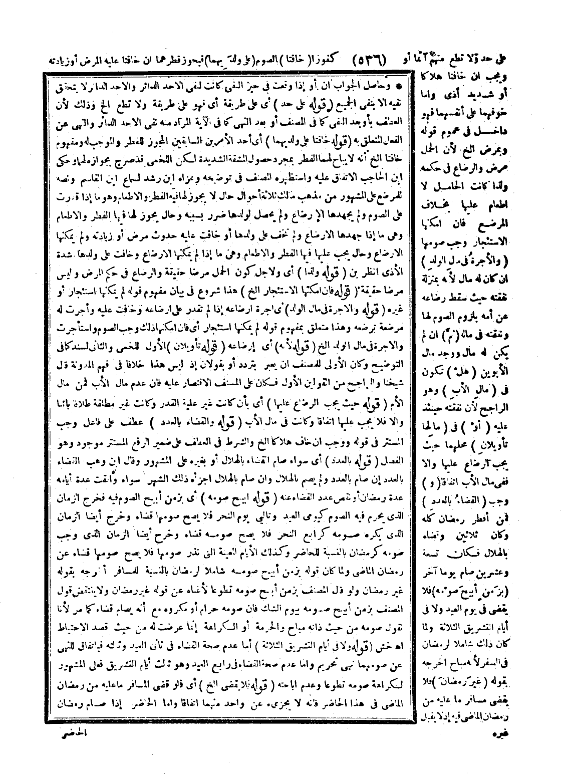 (قَوْلُهُ عَلَى حَدٍّ) أَيْ عَلَى طَرِيقَةٍ أَيْ فَهُوَ عَلَى طَرِيقَةِ وَلَا تُطِعْ إلَخْ وَذَلِكَ؛ لِأَنَّ الْعَطْفَ بِأَوْ بَعْدَ النَّفْيِ كَمَا فِي الْمُصَنِّفُ أَوْ بَعْدَ النَّهْيِ كَمَا فِي الْآيَةِ الْمُرَادُ مِنْهُ نَفْيُ الْأَحَدِ الدَّائِرِ وَالنَّهْيِ عَنْ الْفِعْلِ الْمُتَعَلِّقِ بِهِ (قَوْلُهُ خَافَتَا عَلَى وَلِيدَيْهِمَا) أَيْ أَحَدِ الْأَمْرَيْنِ السَّابِقَيْنِ الْمُجَوِّزِ لِلْفِطْرِ وَالْمُوجِبِ لَهُ وَمَفْهُومُ خَافَتَا إلَخْ أَنَّهُ لَا يُبَاحُ لَهُمَا الْفِطْرُ بِمُجَرَّدِ حُصُولِ الْمَشَقَّةِ الشَّدِيدَةِ لَكِنَّ اللَّخْمِيَّ قَدْ صَرَّحَ بِجَوَازِهِ لَهُمَا وَحَكَى ابْنُ الْحَاجِبِ الِاتِّفَاقَ عَلَيْهِ وَاسْتَظْهَرَهُ الْمُصَنِّفُ فِي تَوْضِيحِهِ وَعَزَاهُ ابْنُ رُشْدٍ لِسَمَاعِ ابْنِ الْقَاسِمِ وَنَصُّهُ لِلْمُرْضِعِ عَلَى الْمَشْهُورِ مِنْ مَذْهَبِ مَالِكٍ ثَلَاثَةُ أَحْوَالٍ: حَالٌ لَا يَجُوزُ لَهَا فِيهِ الْفِطْرُ وَالْإِطْعَامُ، وَهُوَ مَا إذَا قَدَرَتْ عَلَى الصَّوْمِ وَلَمْ يُجْهِدْهَا الْإِرْضَاعُ وَلَمْ يَحْصُلْ لِوَلَدِهَا ضَرَرٌ بِسَبَبِهِ وَحَالٌ يَجُوزُ لَهَا فِيهَا الْفِطْرُ وَالْإِطْعَامُ، وَهِيَ مَا إذَا جَهَدَهَا الْإِرْضَاعُ وَلَمْ تَخَفْ عَلَى وَلَدِهَا أَوْ خَافَتْ عَلَيْهِ حُدُوثَ مَرَضٍ أَوْ زِيَادَةٍ وَلَمْ يُمْكِنْهَا الْإِرْضَاعُ وَحَالٌ يَجِبُ عَلَيْهَا فِيهَا الْفِطْرُ وَالْإِطْعَامُ، وَهِيَ مَا إذَا لَمْ يُمْكِنْهَا الْإِرْضَاعُ وَخَافَتْ عَلَى وَلَدِهَا شِدَّةَ الْأَذَى اُنْظُرْ بْن (قَوْلُهُ وَلِذَا) أَيْ وَلِأَجْلِ كَوْنِ الْحَمْلِ مَرَضًا حَقِيقَةً وَالرَّضَاعِ فِي حُكْمِ الْمَرَضِ وَلَيْسَ مَرَضًا حَقِيقَةً.