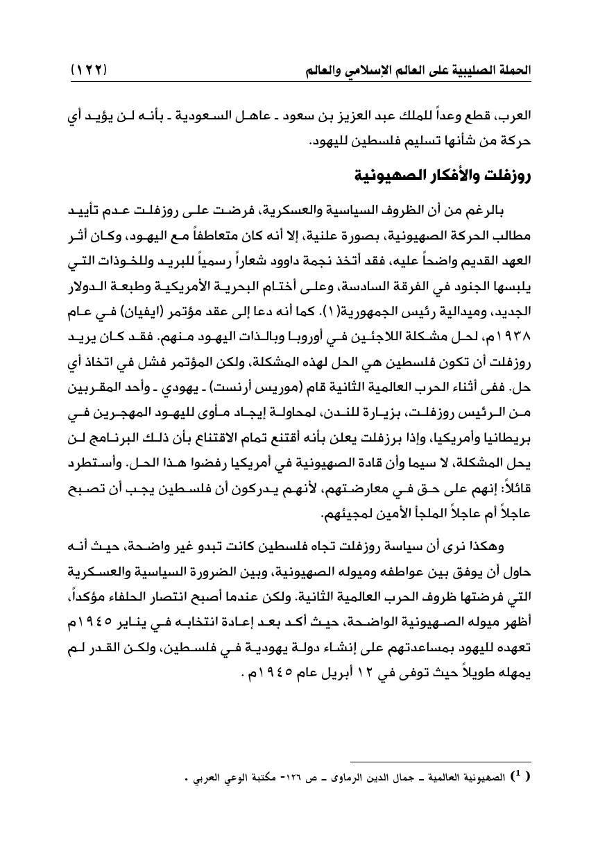 (¬1) الصهيونية العالمية ـ جمال الدين الرماوى ـ ص 126 - مكتبة الوعي العربي.