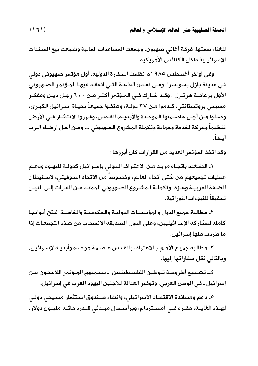 5ـ دعم ومساندة الاقتصاد الإسرائيلي، وإنشاء صندوق استثمار مسيحي دولي لهذه الغاية، مقره في أمستردام، وبرأسمال مبدئي قدره مائة مليون دولار،