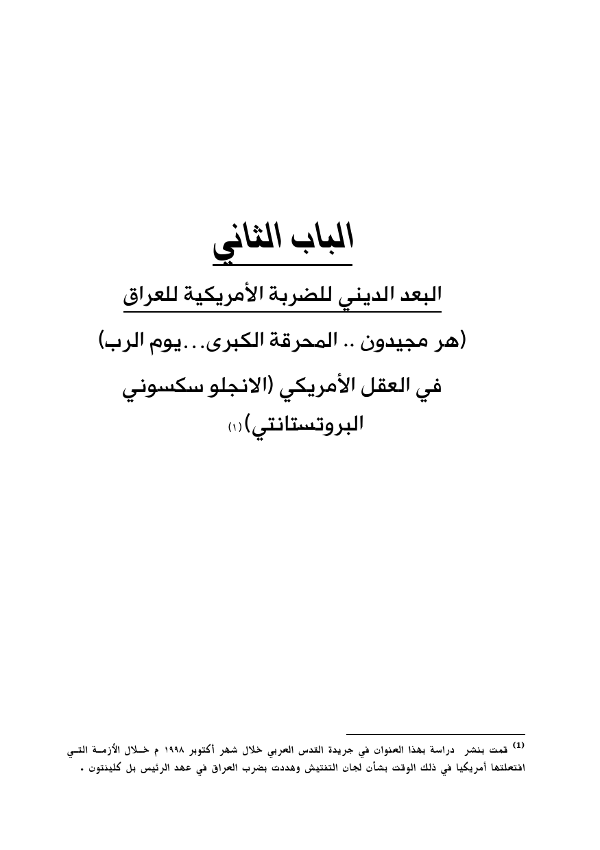 (¬1) قمت بنشر دراسة بهذا العنوان في جريدة القدس العربي خلال شهر أكتوبر 1998 م خلال الأزمة التي افتعلتها أمريكيا في ذلك الوقت بشأن لجان التفتيش وهددت بضرب العراق في عهد الرئيس بل كلينتون
