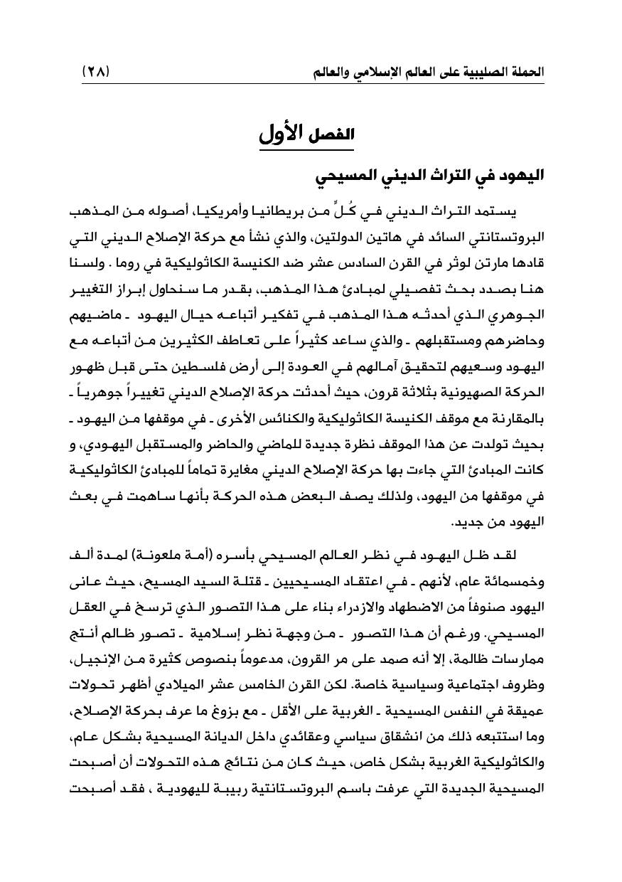 لقد ظل اليهود في نظر العالم المسيحي بأسره (أمة ملعونة) لمدة ألف وخمسمائة عام، لأنهم ـ في اعتقاد المسيحيين ـ قتلة السيد المسيح، حيث عانى اليهود صنوفاً من الاضطهاد والازدراء بناء على هذا التصور الذي ترسخ في العقل المسيحي. ورغم أن هذا التصور ـ من وجهة نظر إسلامية ـ تصور ظالم أنتج ممارسات ظالمة، إلا أنه صمد على مر القرون، مدعوماً بنصوص كثيرة من الإنجيل، وظروف اجتماعية وسياسية خاصة. لكن القرن الخامس عشر الميلادي أظهر تحولات عميقة في النفس المسيحية ـ الغربية على الأقل ـ مع بزوغ ما عرف بحركة الإصلاح، وما استتبعه ذلك من انشقاق سياسي وعقائدي داخل الديانة المسيحية بشكل عام، والكاثوليكية الغربية بشكل خاص، حيث كان من نتائج هذه التحولات أن أصبحت المسيحية الجديدة التي عرفت باسم البروتستانتية ربيبة لليهودية، فقد أصبحت