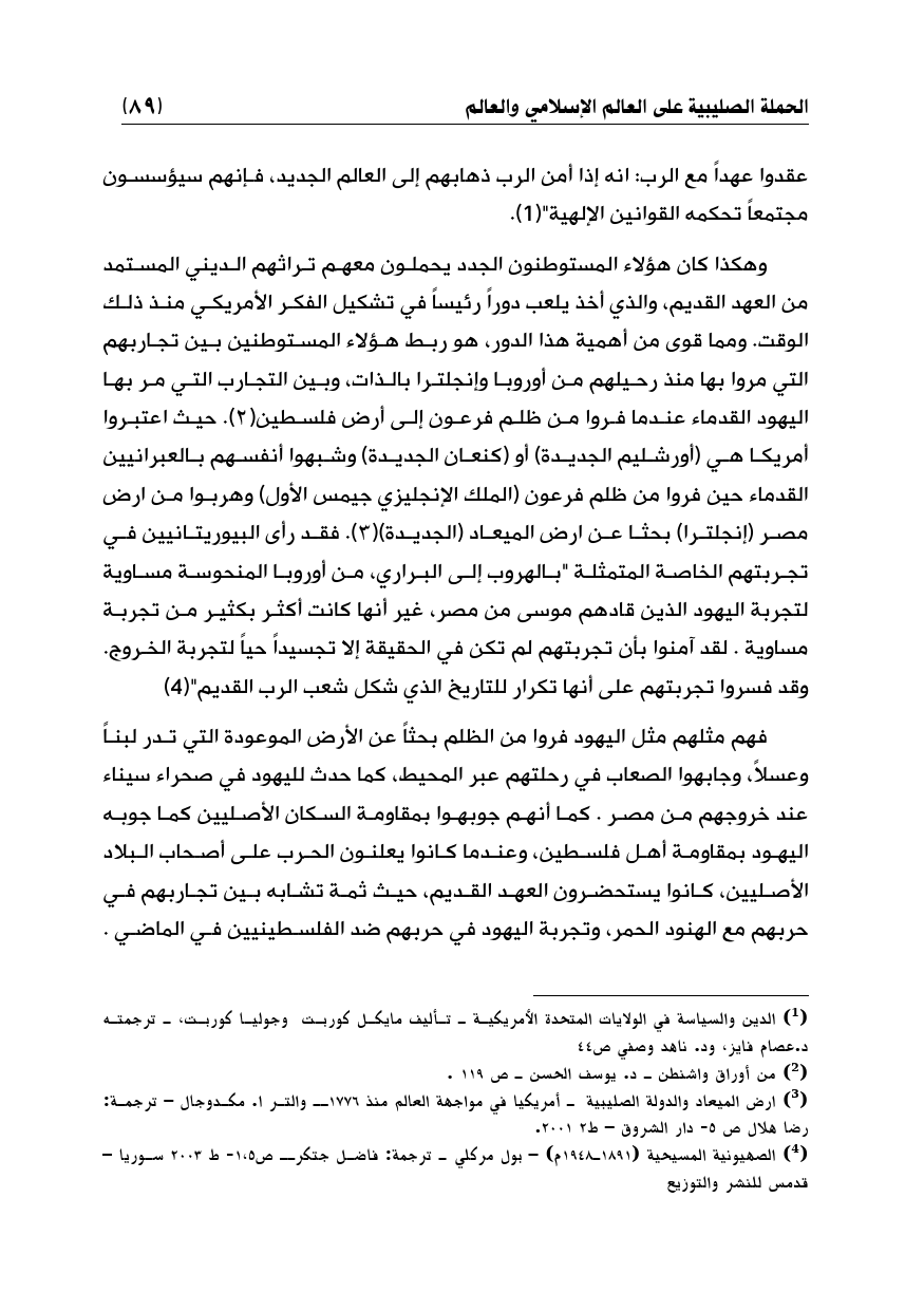 (¬3) ارض الميعاد والدولة الصليبية ـ أمريكيا في مواجهة العالم منذ 1776ـ والتر ا. مكدوجال - ترجمة: رضا هلال ص 5 - دار الشروق - ط2 2001.