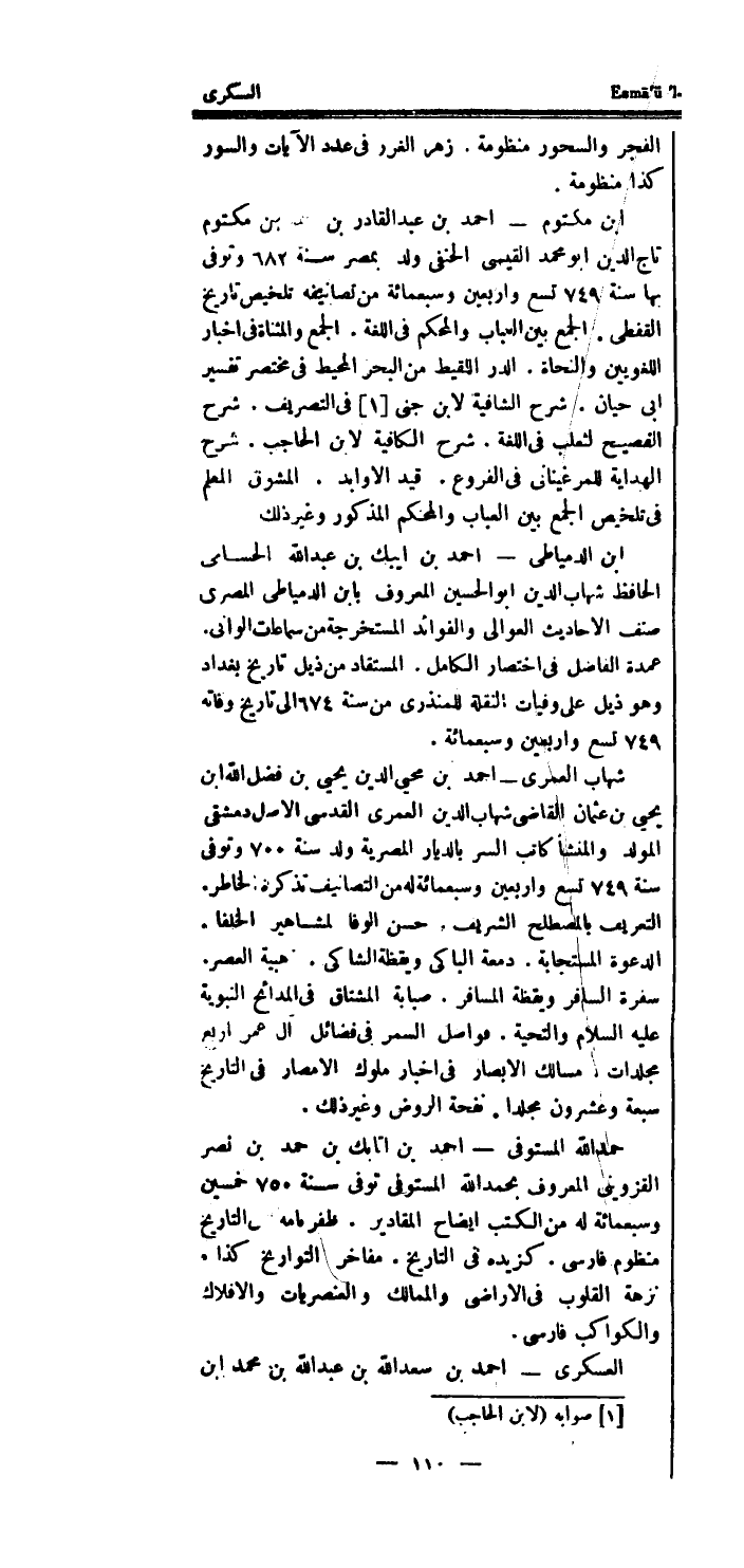 حمد الله الْمُسْتَوْفى - احْمَد بن اتابك بن حمد بن نصر الْقزْوِينِي الْمَعْرُوف بِحَمْد الله الْمُسْتَوْفى توفى سنة 750 خمسين وَسَبْعمائة لَهُ من الْكتب ايضاح الْمَقَادِير.