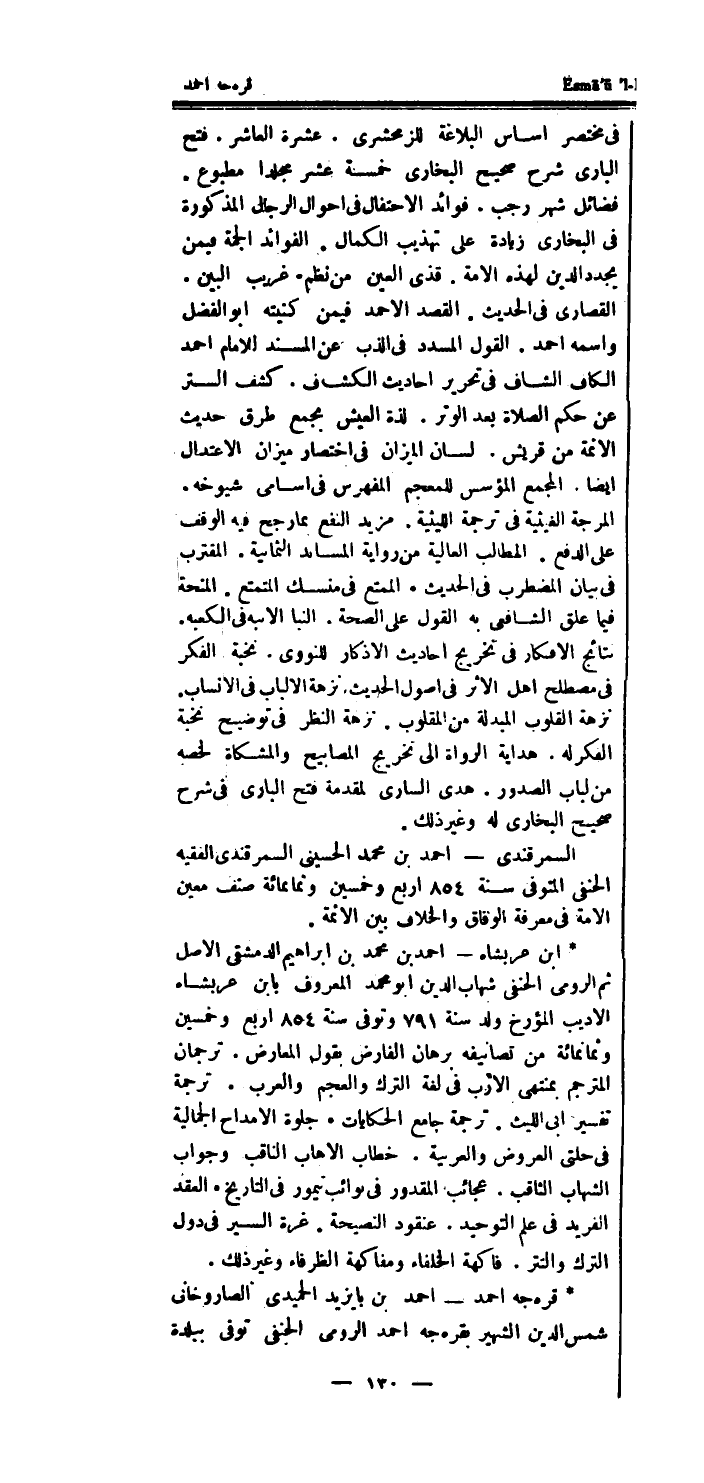 * ابْن عربشاه - احْمَد بن مُحَمَّد بن ابراهيم الدِّمَشْقِي الاصل ثمَّ الرُّومِي الْحَنَفِيّ شهَاب الدَّين أَبُو مُحَمَّد الْمَعْرُوف بِابْن عربشاه الاديب المؤرخ ولد سنة 791 وَتوفى سنة 854 ارْبَعْ وَخمسين وَثَمَانمِائَة من تصانيفه برهَان الفارض بقول الْمعَارض.