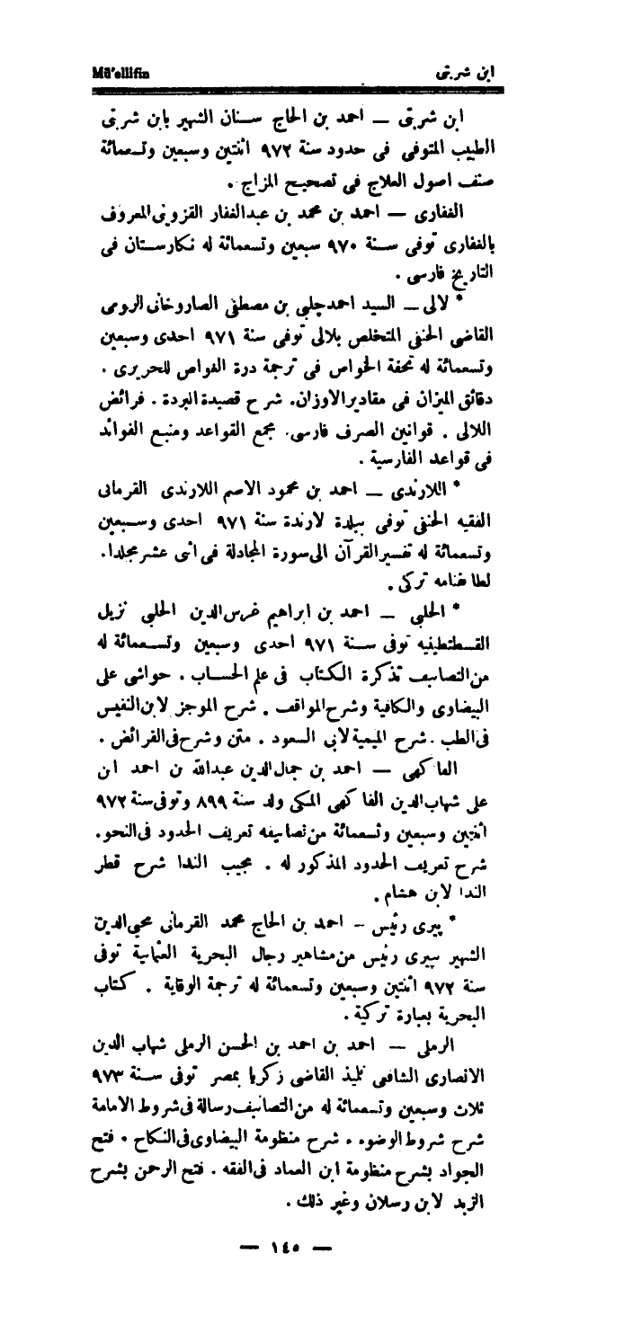 ابْن شربتي - احْمَد بن الْحَاج سِنَان الشهير بِابْن شربتي الطَّبِيب الْمُتَوفَّى فِي حُدُود سنة 972 اثْنَتَيْنِ وَسبعين وَتِسْعمِائَة صنف اصول العلاج فِي تَصْحِيح المزاج.