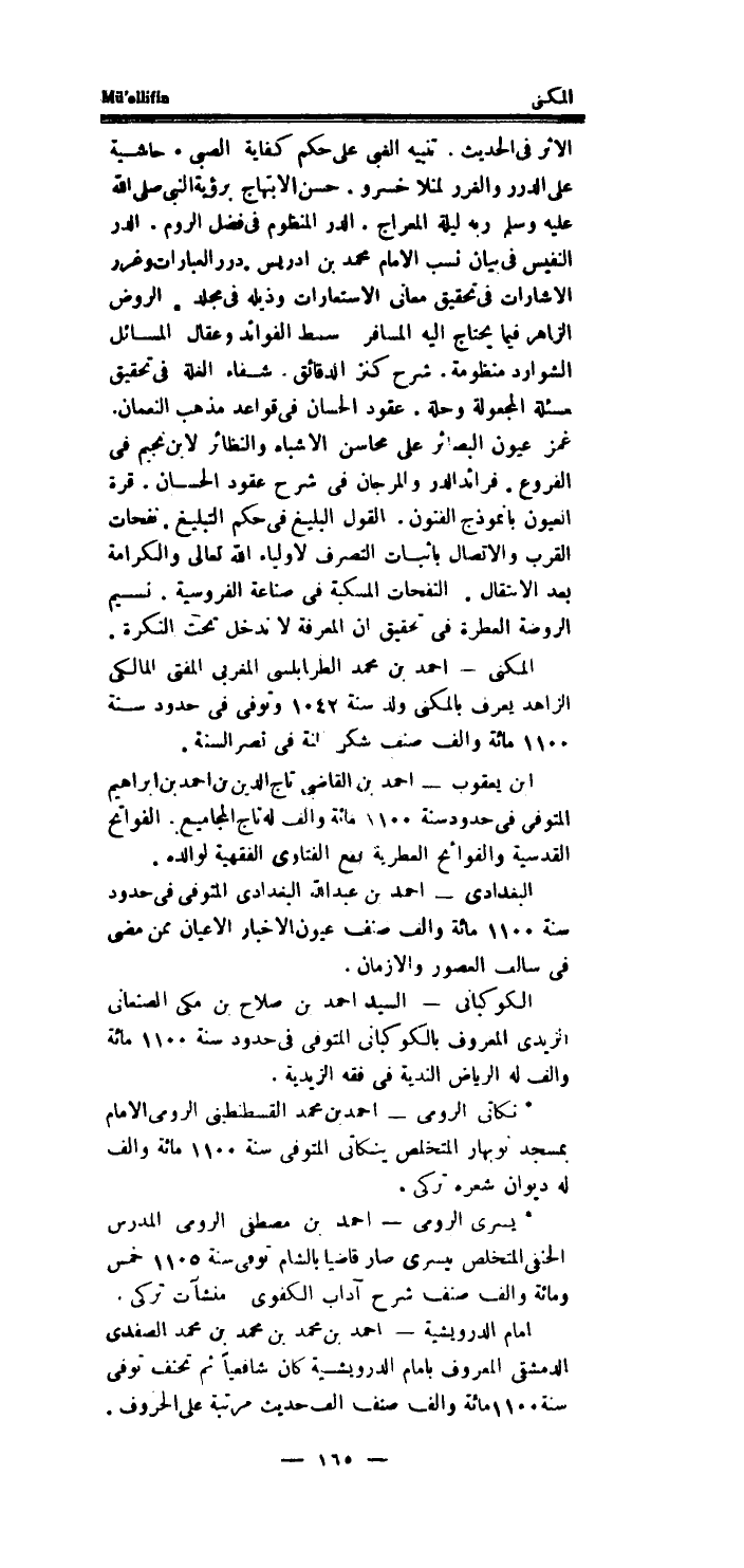 * نكاتي الرُّومِي - احْمَد بن مُحَمَّد القسطنطيني الرُّومِي الامام بِمَسْجِد نوبهار المتخلص ينكاتى الْمُتَوفَّى سنة 1100 مائَة والف لَهُ ديوَان شعره تركي.