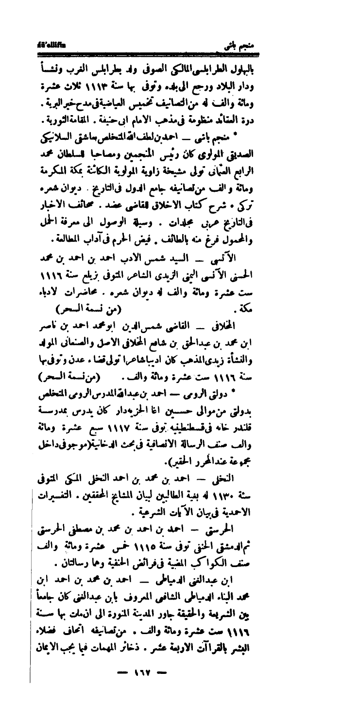 النخلى - احْمَد بن مُحَمَّد بن احْمَد النخلى المكى الْمُتَوفَّى سنة 1130 لَهُ بغية الطالبين لبَيَان الْمَشَايِخ الْمُحَقِّقين.