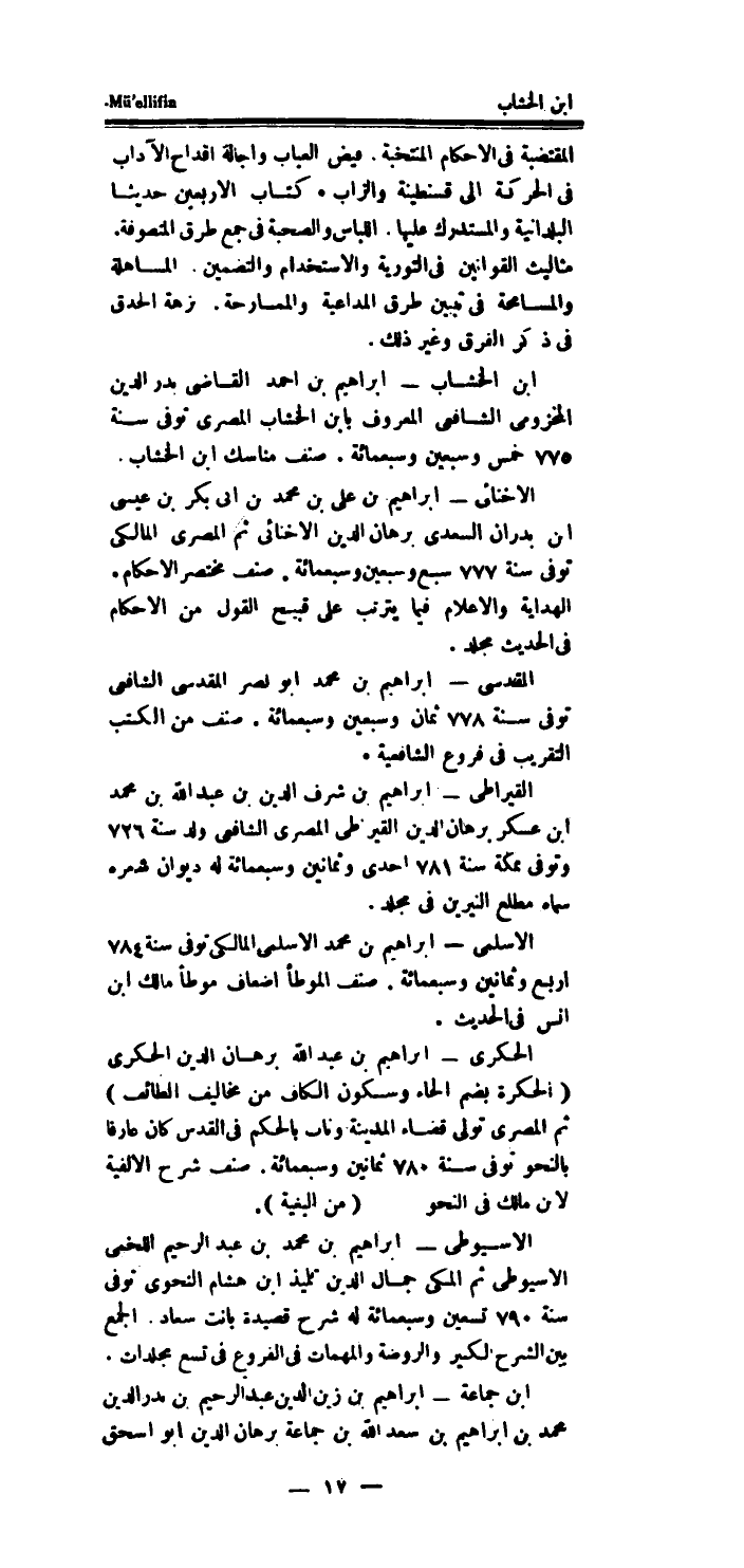الاسلمي - ابراهيم بن مُحَمَّد الاسلمي المالكى توفى سنة 784 ارْبَعْ وَثَمَانِينَ وَسَبْعمائة.