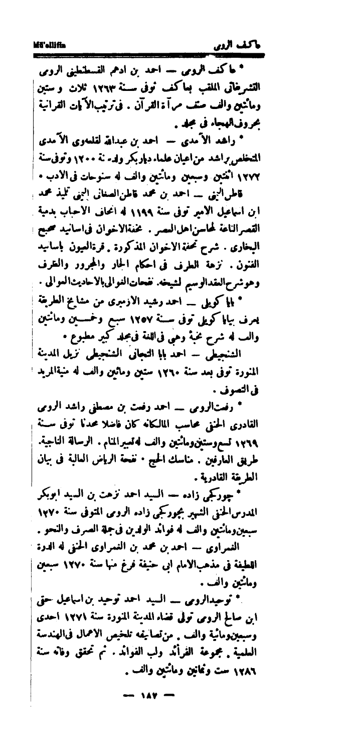 * تَوْحِيد الرُّومِي - السَّيِّد احْمَد تَوْحِيد بن اسماعيل حقى ابْن صَالح الرُّومِي تولى قَضَاء الْمَدِينَة المنورة سنة 1271 احدى وَسبعين ومائية والف.