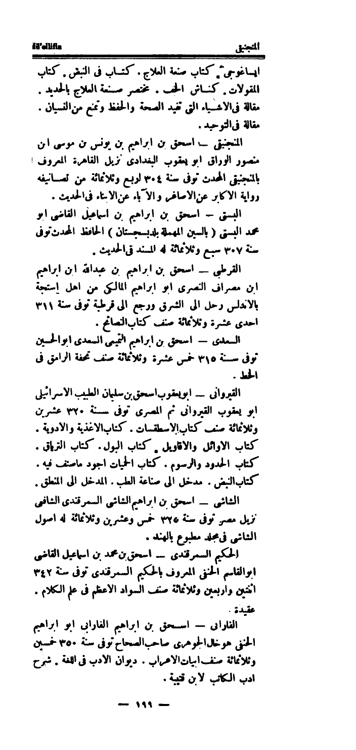 القيرواني - أَبُو يَعْقُوب اسحق بن سُلَيْمَان الطَّبِيب الاسرائيلي أَبُو يَعْقُوب القيرواني ثمَّ المصرى توفى سنة 320 عشْرين وثلاثمائة صنف كتاب الاسطقسات.