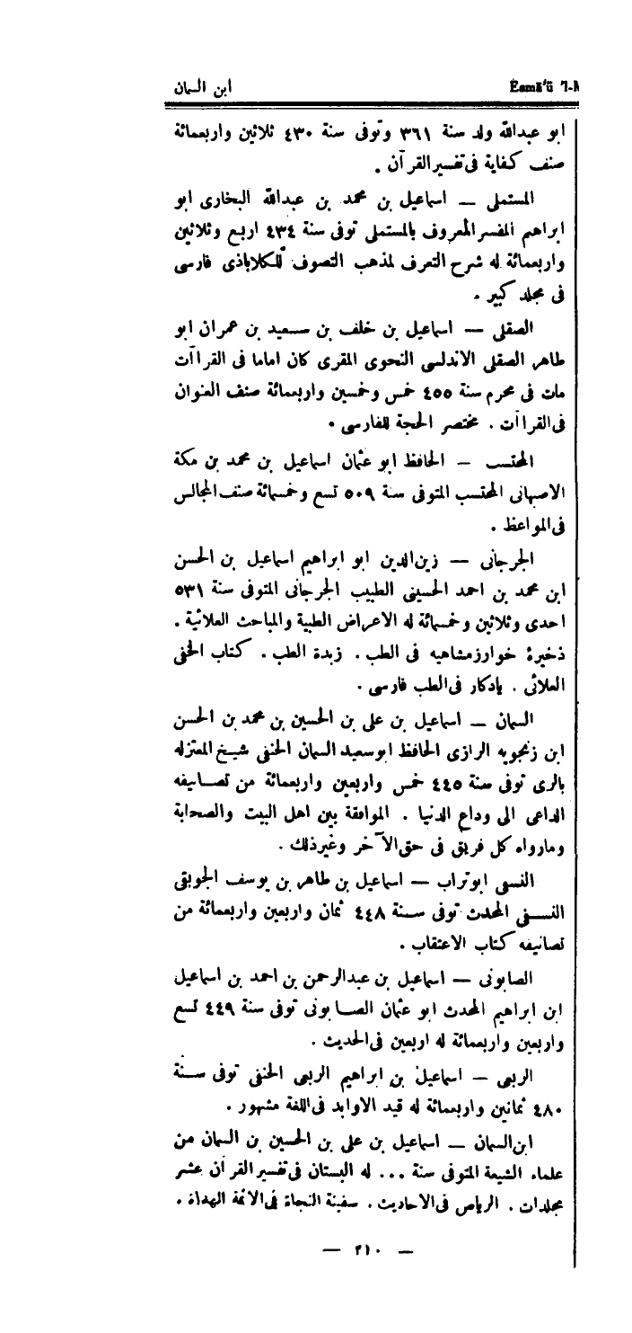 الصابونى - اسماعيل بن عبد الرحمن بن احْمَد بن اسماعيل ابْن ابراهيم الْمُحدث أَبُو عُثْمَان الصابونى توفى سنة 449 تسع واربعين واربعمائة لَهُ اربعين فِي الحَدِيث.