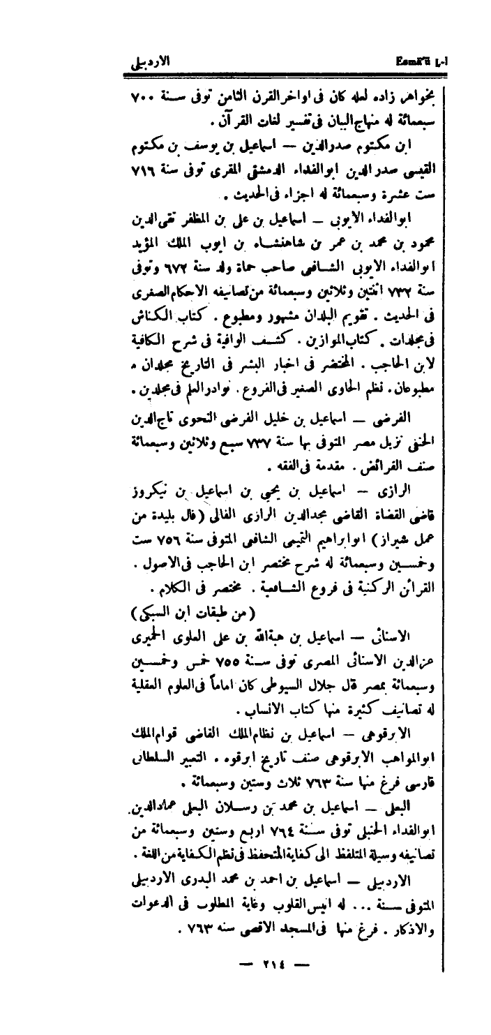 الاردبيلى - اسماعيل بن احْمَد بن مُحَمَّد البدرى الاردبيلى الْمُتَوفَّى سنة ...