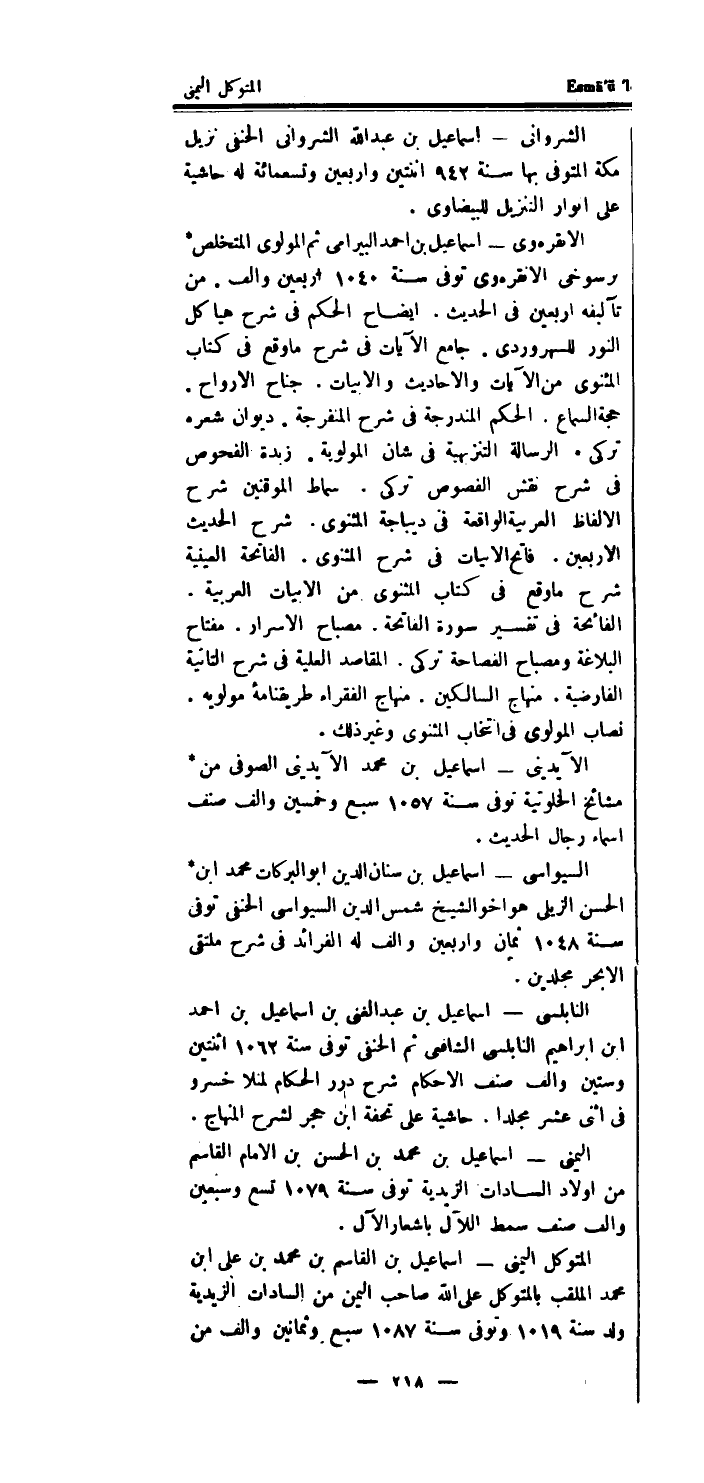 الشروانى - اسماعيل بن عبد الله الشروانى الْحَنَفِيّ نزيل مَكَّة الْمُتَوفَّى بهَا سنة 942 اثْنَتَيْنِ واربعين وَتِسْعمِائَة لَهُ حَاشِيَة على انوار التَّنْزِيل للبيضاوي.