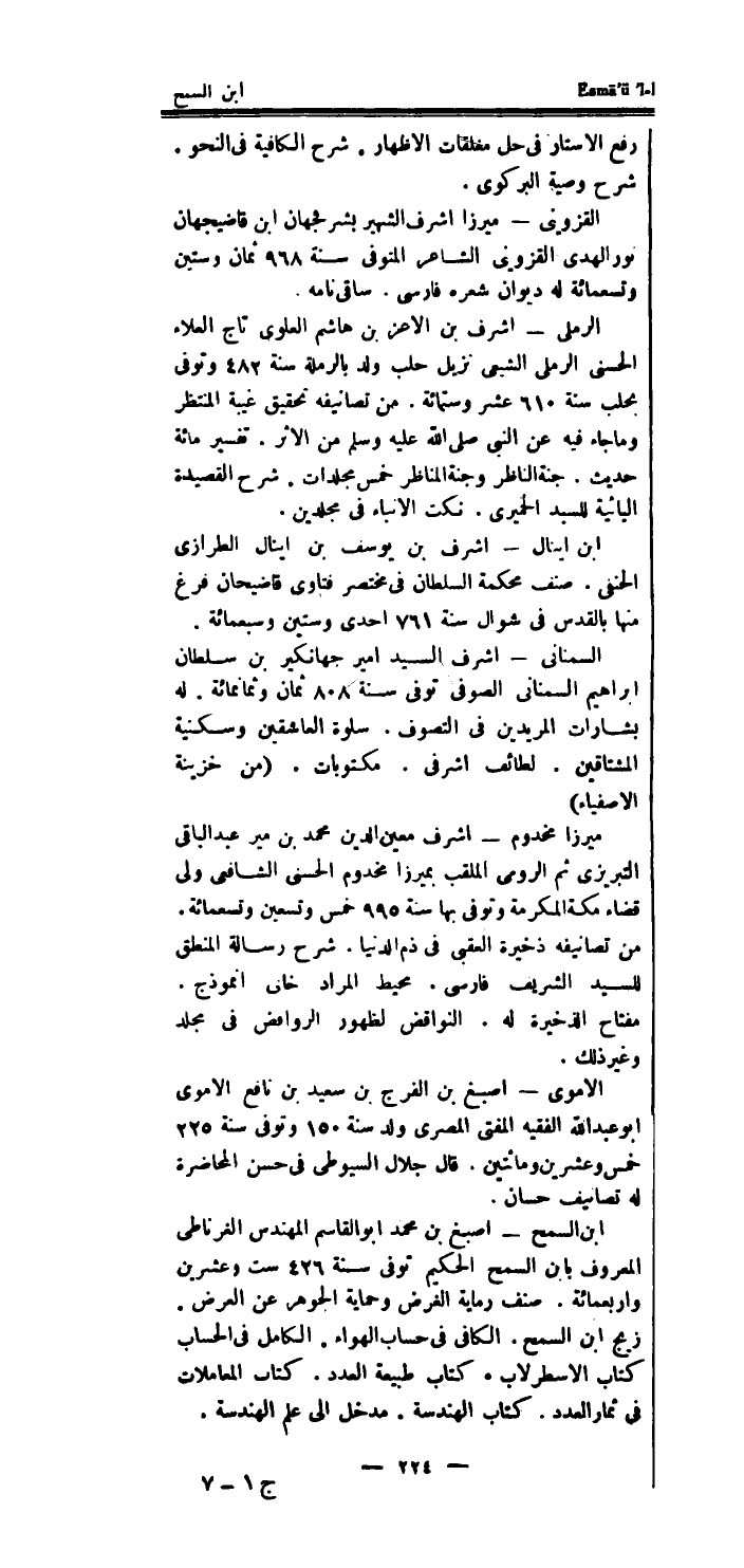 السمنانى - اشرف السَّيِّد امير جهانكير بن سُلْطَان ابراهيم السمنانى الصوفى توفى سنة 808 ثَمَان وَثَمَانمِائَة.