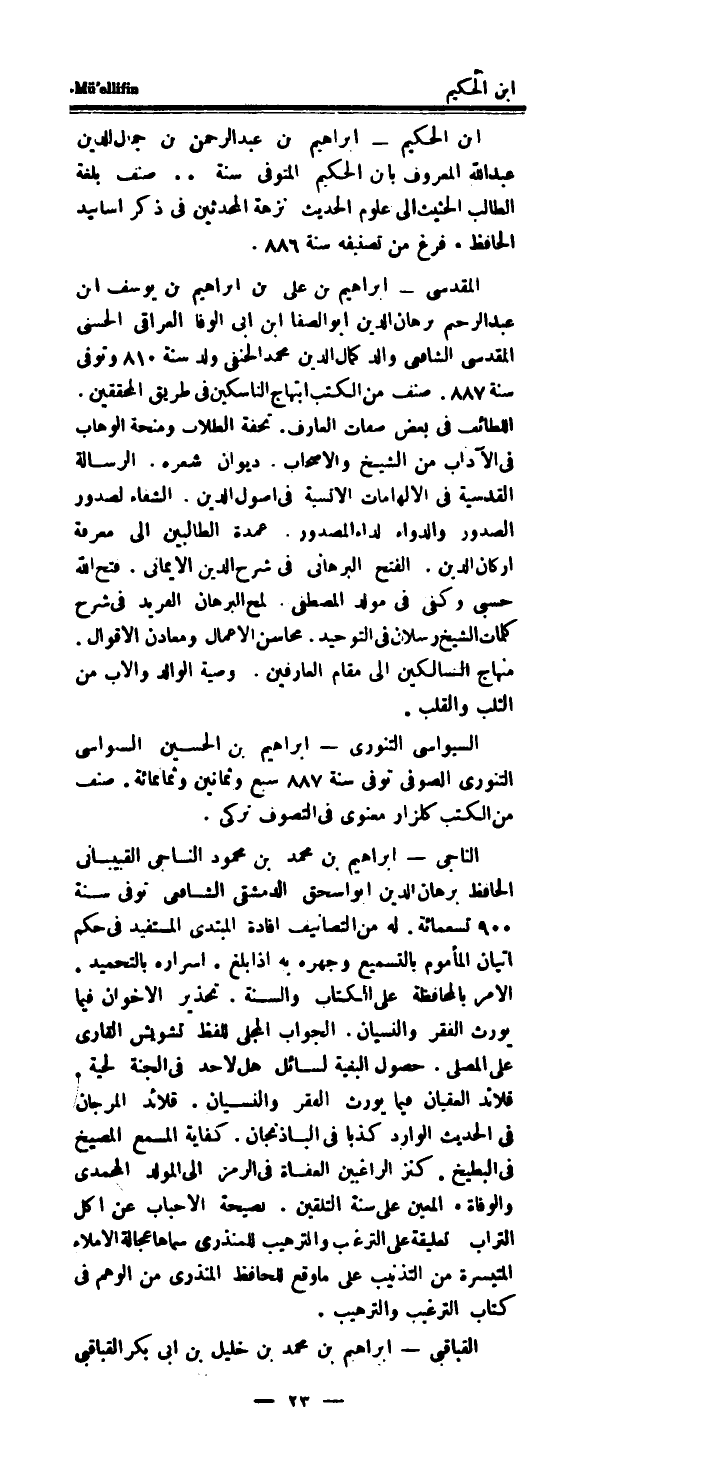 ابْن الْحَكِيم - ابراهيم بن عبد الرحمن بن جمال الدَّين عبد الله الْمَعْرُوف بَان الْحَكِيم الْمُتَوفَّى سنة..صنف بلغَة الطَّالِب الحثيث إِلَى عُلُوم الحَدِيث نزهة الْمُحدثين فِي ذكر اسانيد الْحَافِظ.