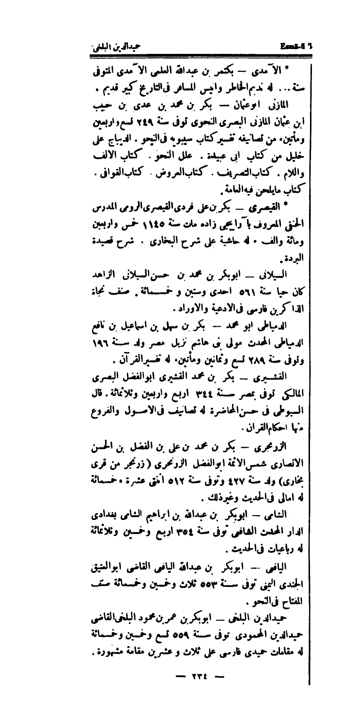 حميد الدَّين البلخى - أَبُو بكر بن عمر بن مَحْمُود البلخى القاضى حميد الدَّين المحمودى توفى سنة 559 تسع وَخمسين وَخَمْسمِائة لَهُ مقامات حميدي فَارسي على ثَلَاث وَعشْرين مقامة مَشْهُورَة.