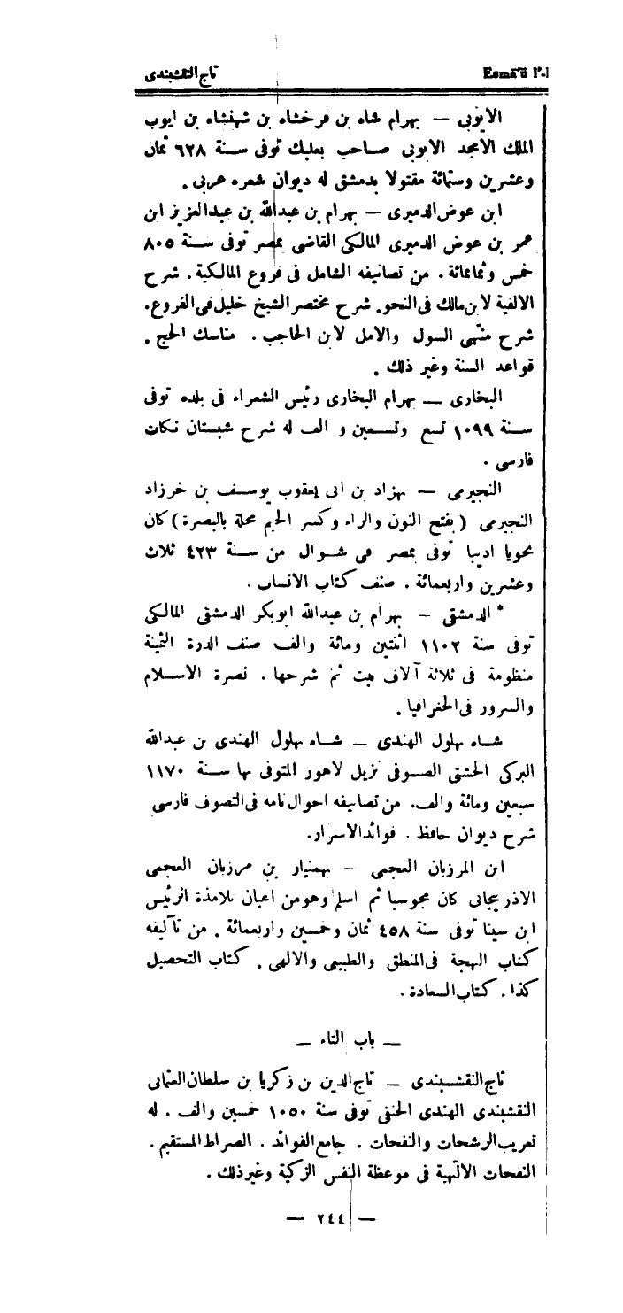 تَاج النقشبندى - تَاج الدَّين بن زَكَرِيَّا بن سُلْطَان العثماني النقشبندى الْهِنْدِيّ الْحَنَفِيّ توفى سنة 1050 خمسين والف.