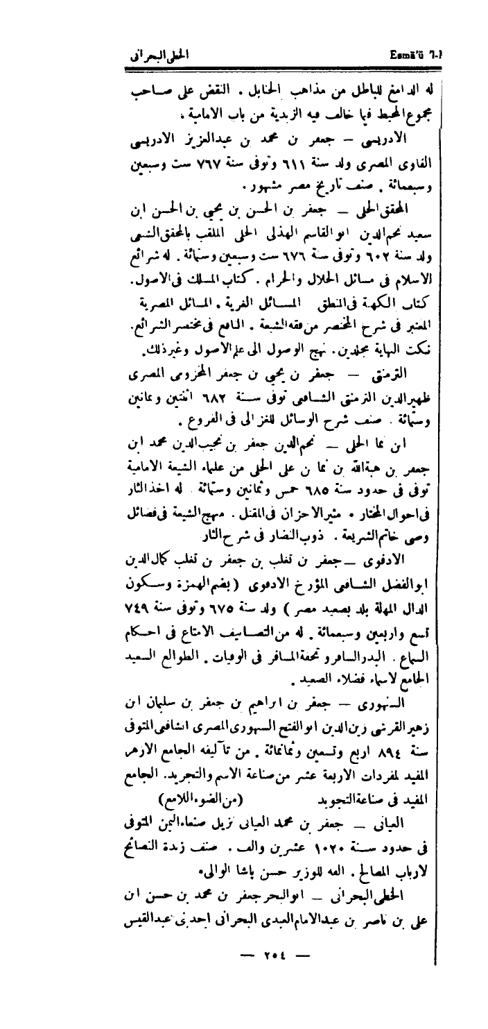 ابْن نما الحلى - نجم الدَّين جَعْفَر بن نجيب الدَّين مُحَمَّد ابْن جَعْفَر بن هبة الله بن نما بن على الحلى من عُلَمَاء الشِّيعَة الامامية توفى فِي حُدُود سنة 685 خمس وَثَمَانِينَ وسِتمِائَة لَهُ اخذ الثار فِي احوال الْمُخْتَار.