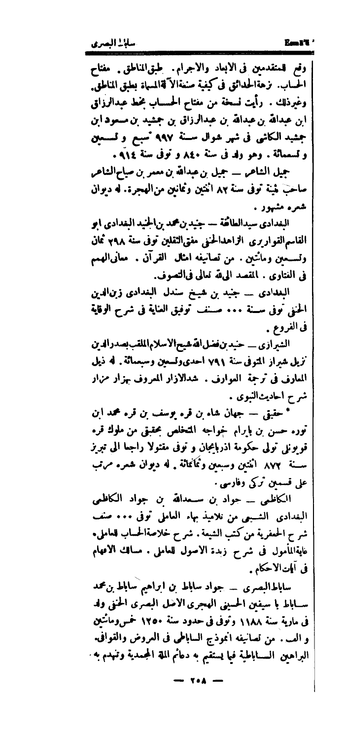 الْبَغْدَادِيّ - جُنَيْد بن شيخ سندل الْبَغْدَادِيّ زين الدَّين الْحَنَفِيّ توفى سنة ...