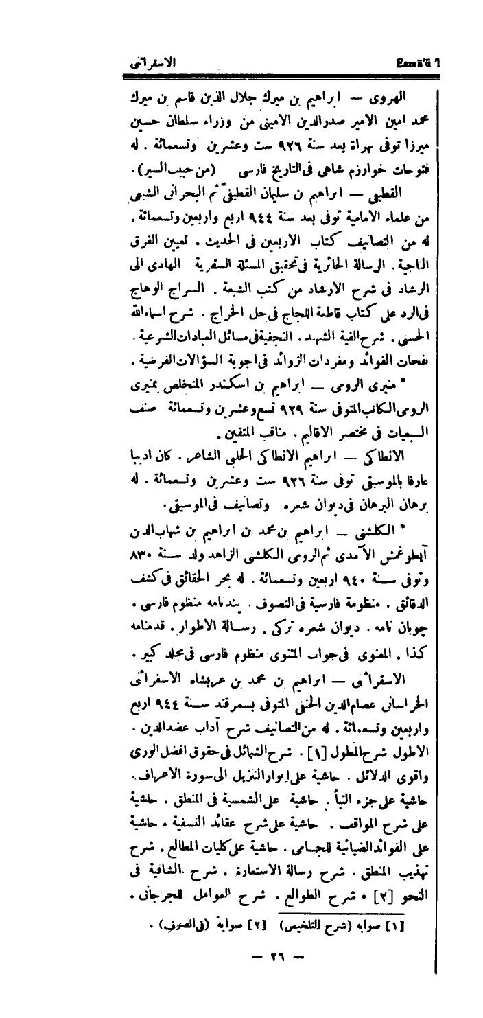 الا سفرائينى - ابراهيم بن مُحَمَّد بن عربشاه الاسفرائنى الْخُرَاسَانِي عِصَام الدَّين الْحَنَفِيّ الْمُتَوفَّى بسمرقند سنة 944 ارْبَعْ واربعين وَتِسْعمِائَة.