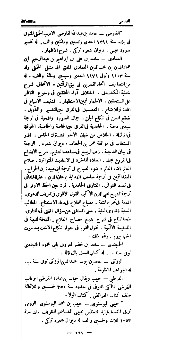 * القارصى - حَامِد بن عبد الله القارصى الاديب الْحَنَفِيّ الْمُتَوفَّى فِي بَلَده سنة 1291 احدى وَتِسْعين وَمِائَتَيْنِ والف.