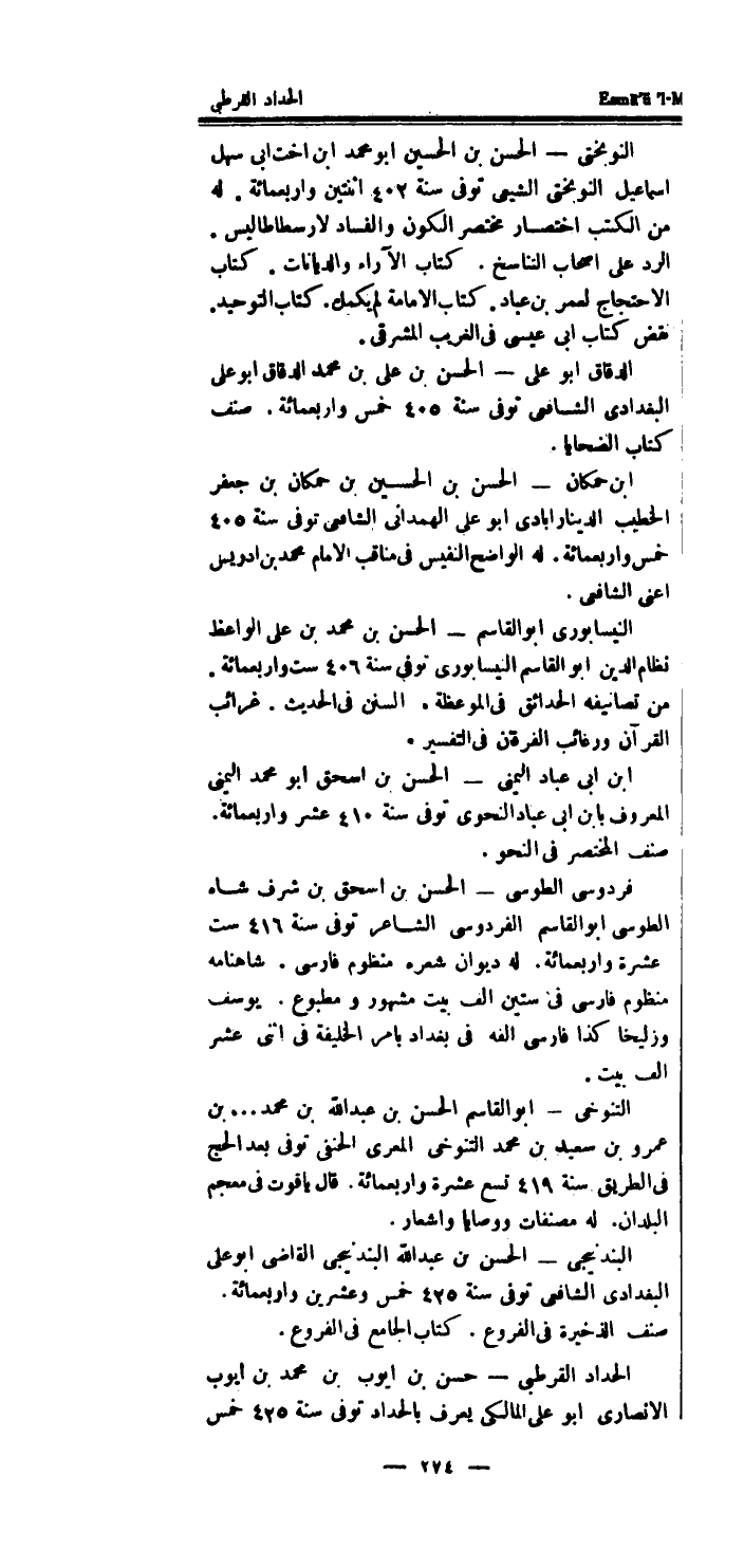 النوبختى - الْحسن بن الْحُسَيْن أَبُو مُحَمَّد ابْن اخت ابى سهل اسماعيل النوبختى الشيعي توفى سنة 402 اثْنَتَيْنِ واربعمائة.