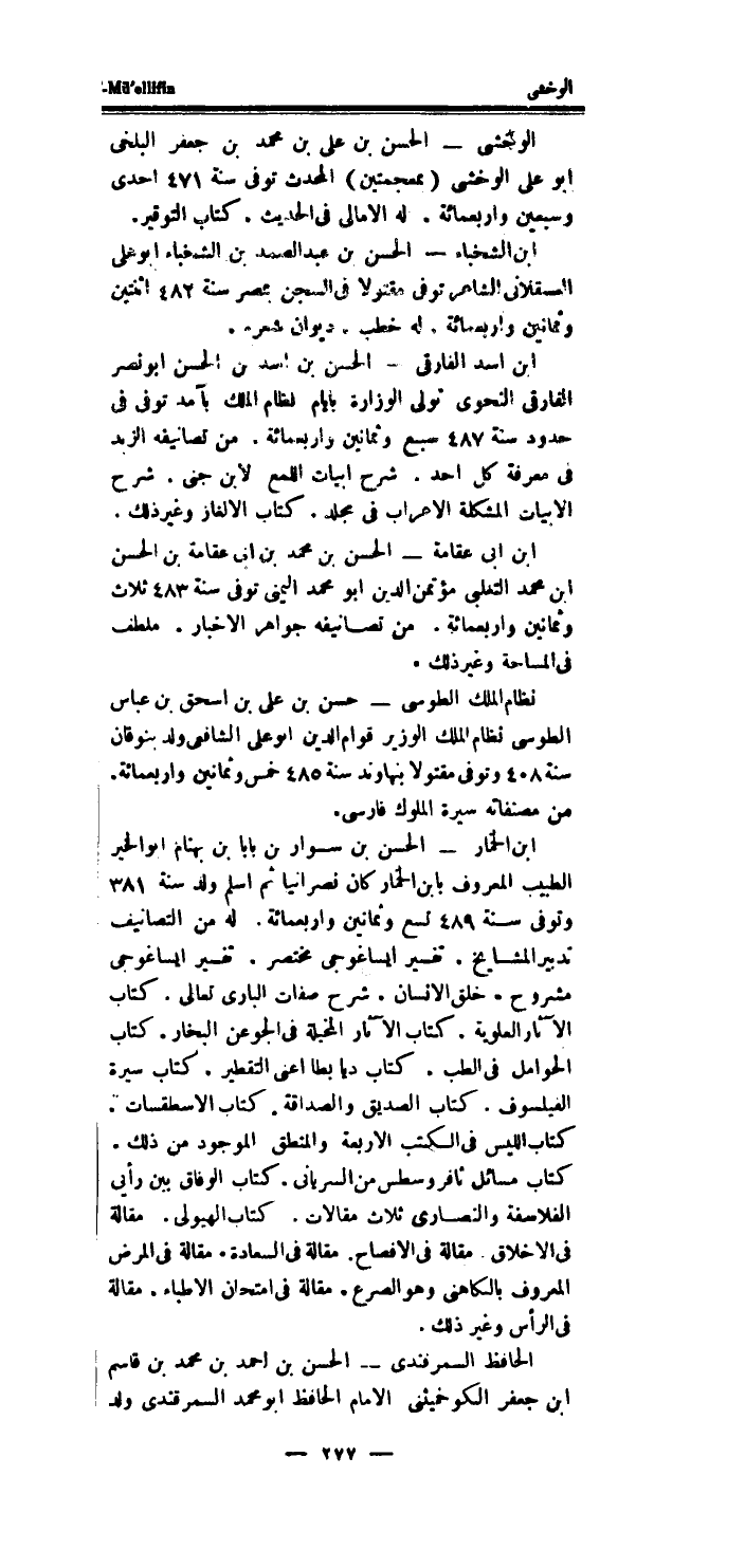 الوخشى - الْحسن بن على بن مُحَمَّد بن جَعْفَر البلخى أَبُو على الوخشى (بمعجمتين) الْمُحدث توفى سنة 471 احدى وَسبعين واربعمائة.