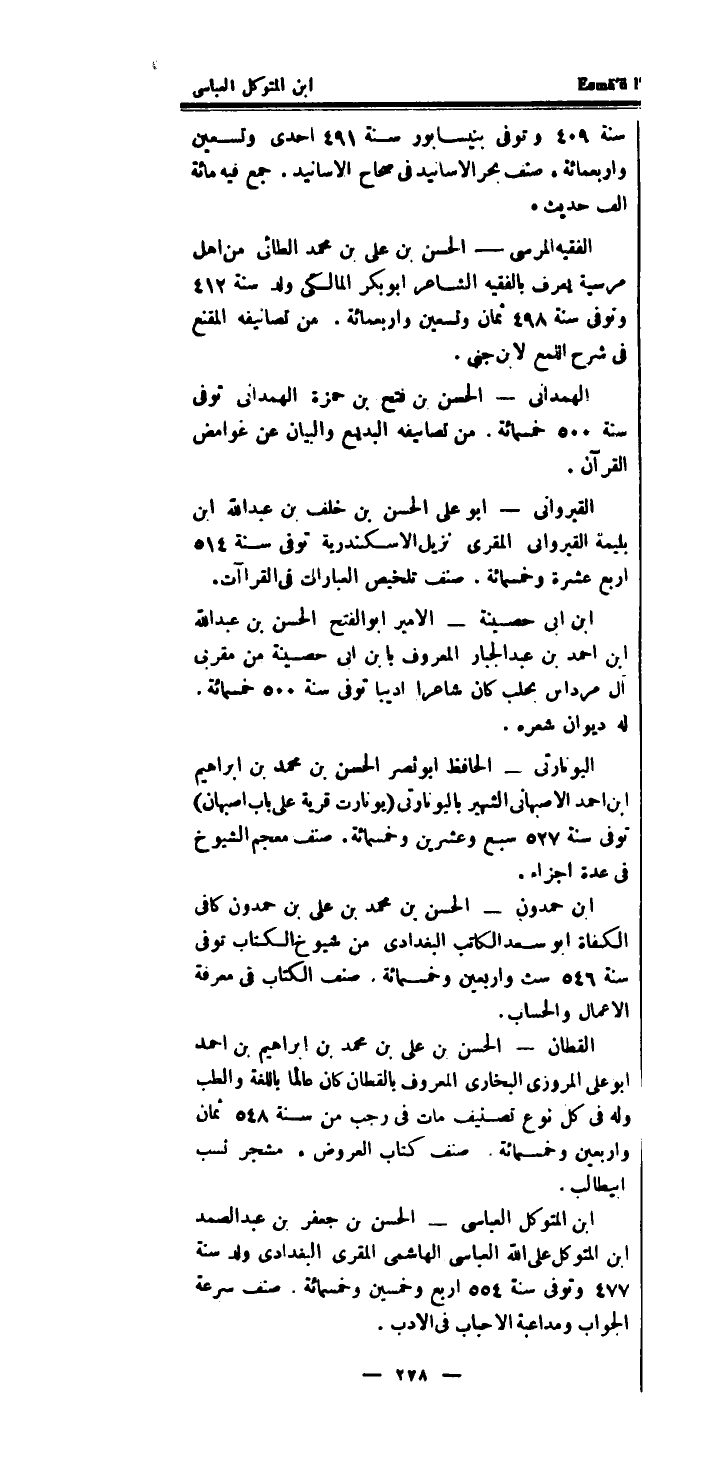 الْهَمدَانِي - الْحسن بن فتح بن حَمْزَة الْهَمدَانِي توفى سنة 500 خَمْسمِائَة.