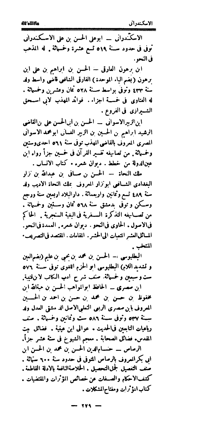 الاسكندرانى - أَبُو على الْحسن بن على الاسكندرانى توفى فِي حُدُود سنة 519 تسع عشرَة وَخَمْسمِائة.