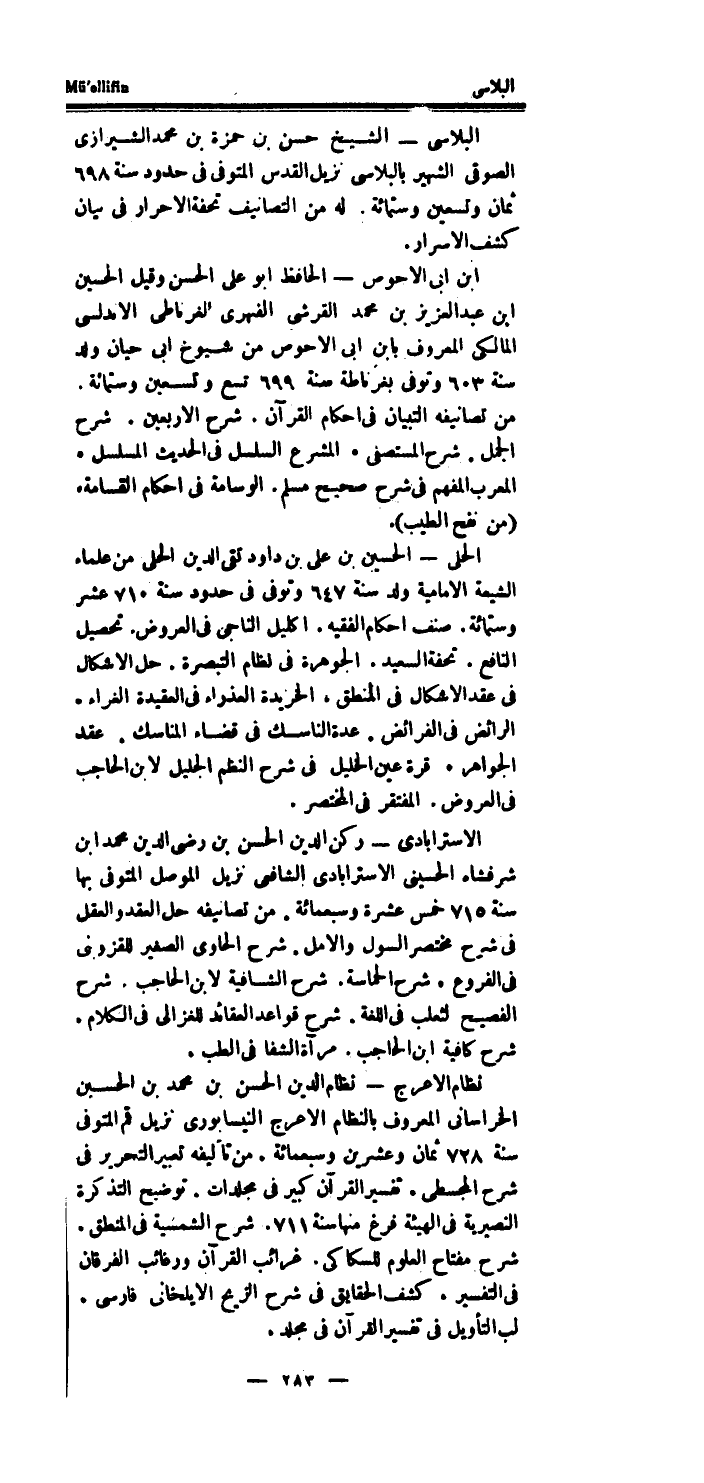 البلاسى - الشَّيْخ حسن بن حَمْزَة بن مُحَمَّد الشِّيرَازِيّ الصوقى الشهير بالبلاسى نزيل الْقُدس الْمُتَوفَّى فِي حُدُود سنة 698 ثَمَان وَتِسْعين وسِتمِائَة.