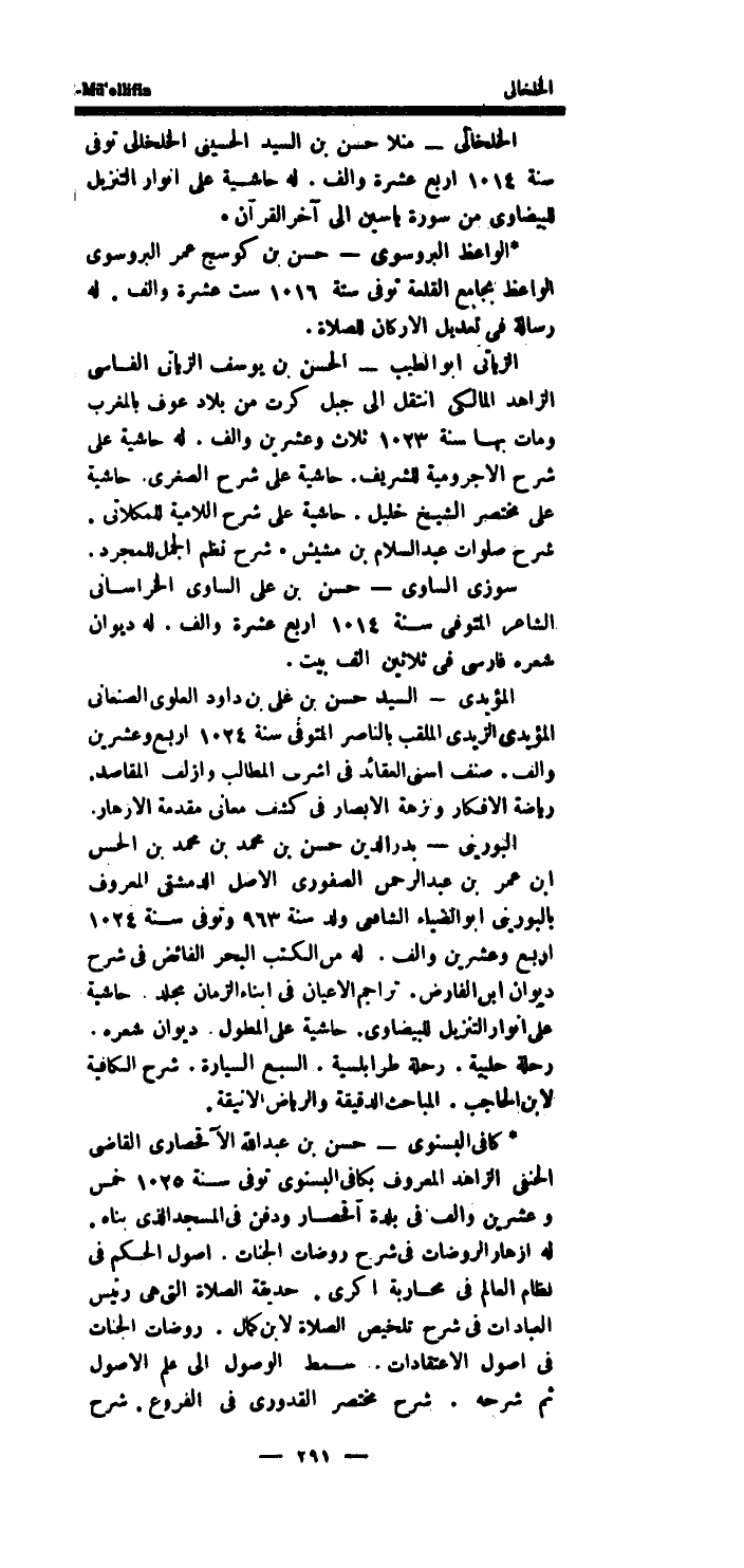 الخلخالي - منلا حسن بن السَّيِّد الحسينى الخلخالي توفى سنة 1014 ارْبَعْ عشرَة والف.
