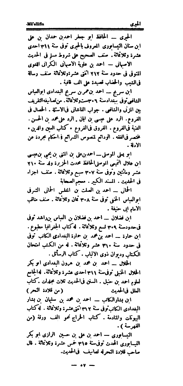 الحيرى - الْحَافِظ أَبُو جَعْفَر احْمَد بن حمدَان بن على ابْن سِنَان النَّيْسَابُورِي الْمَعْرُوف بالحيرى توفى سنة 311 احدى عشرَة وثلاثمائة.